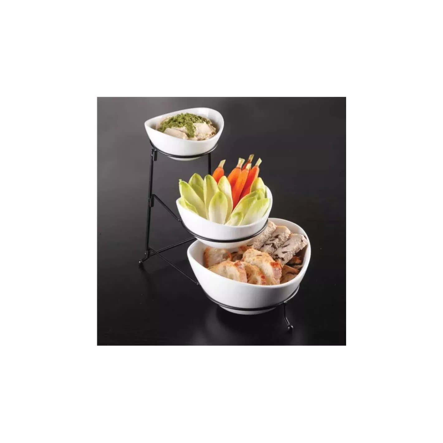 Este juego cuenta con 3 tazones pequeños, medianos y grandes y un estante de metal duradero que crea una impresionante exhibición en tu mesa de comedor, mostrador, buffet y más. Tazones para servir aperitivos son aptos para lavavajillas y el estante de metal se puede lavar a mano. Ideal para servir para añadir un toque elegante a fiestas, vacaciones, recepciones, baby showers, cenas familiares y todos los días.