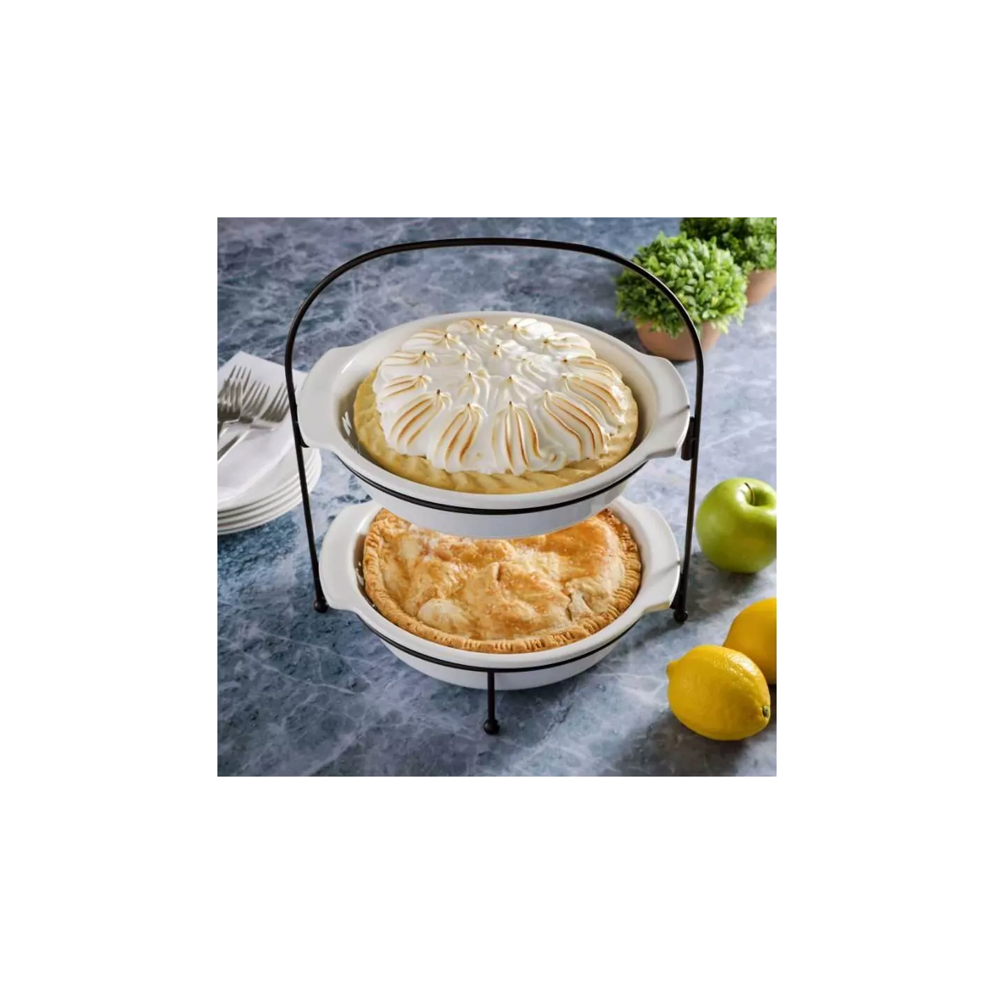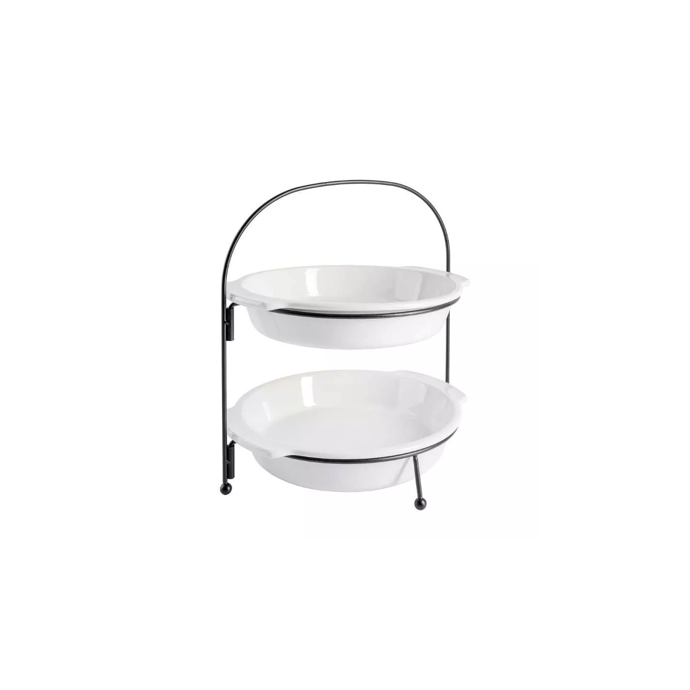 En un hermoso material de cerámica blanca complementado por un estante de metal resistente, este juego es el complemento perfecto para cualquier mesa. Es una pieza genial y fácil que puedes añadir a cualquier mesa cuando tengas invitados. Los platos para tartas son espaciosos y permiten un nivel adicional de comodidad para servir cualquier aperitivo
