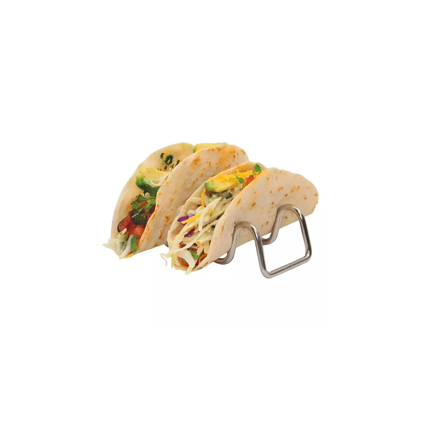 Rack de acero inoxidable para tacos de 2 y 3 cavidades es ideal para crear sus propios tacos sin que se destruya la carcasa. Gracias a este rack puedes impresionar a tus invitados en cualquier ocasión especial. Este molde también le permite exhibir sus creaciones como perros calientes.