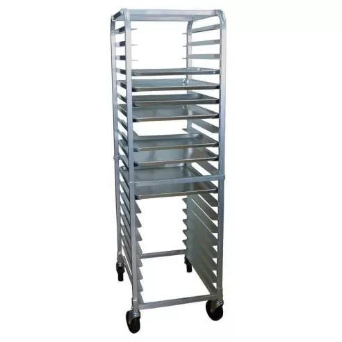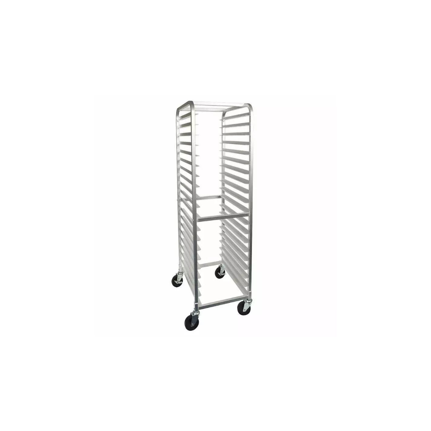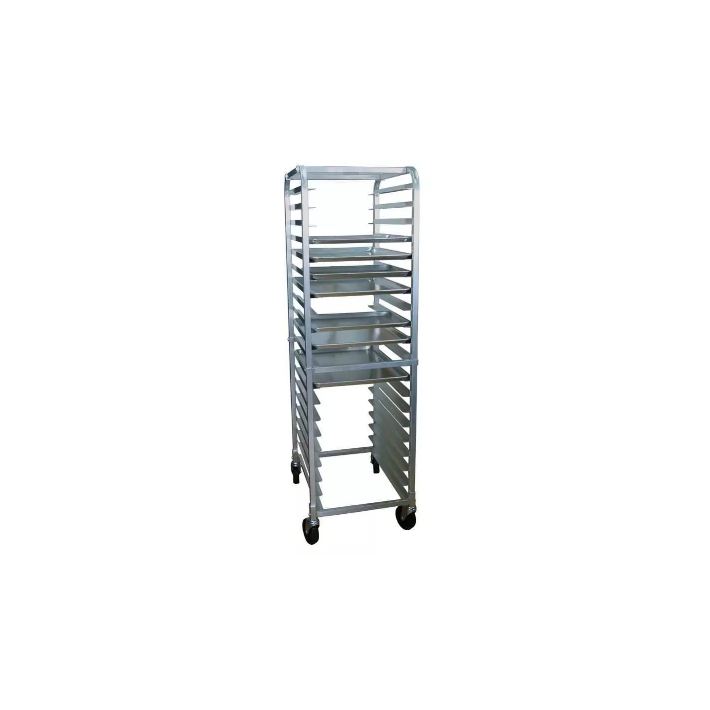 Capaz de contener 20 bandejas de tamaño completo o 40 de tamaño medio, esta rejilla de pan de acero inoxidable de carga es perfecta para transportar su comida alrededor de su panadería, restaurante o cafetería. Debido a que el estante es alto y delgado, utiliza espacio vertical sin ocupar mucho espacio valioso en el piso de su cocina. Este estante para paneles también está construido teniendo en cuenta la durabilidad, por lo que puede estar seguro de que resistirá su uso en su establecimiento.MATERIAL: ALUMINIO