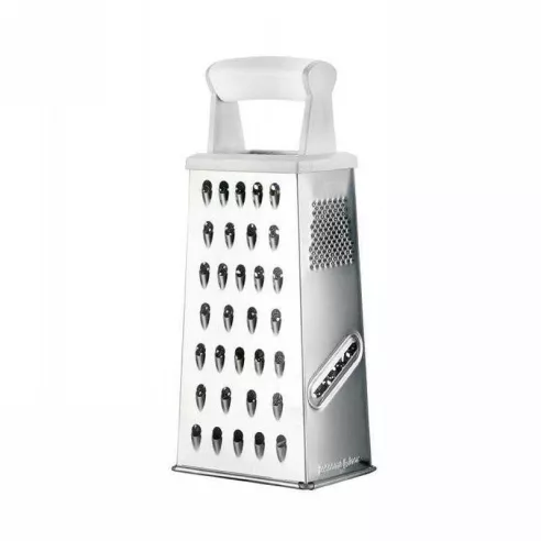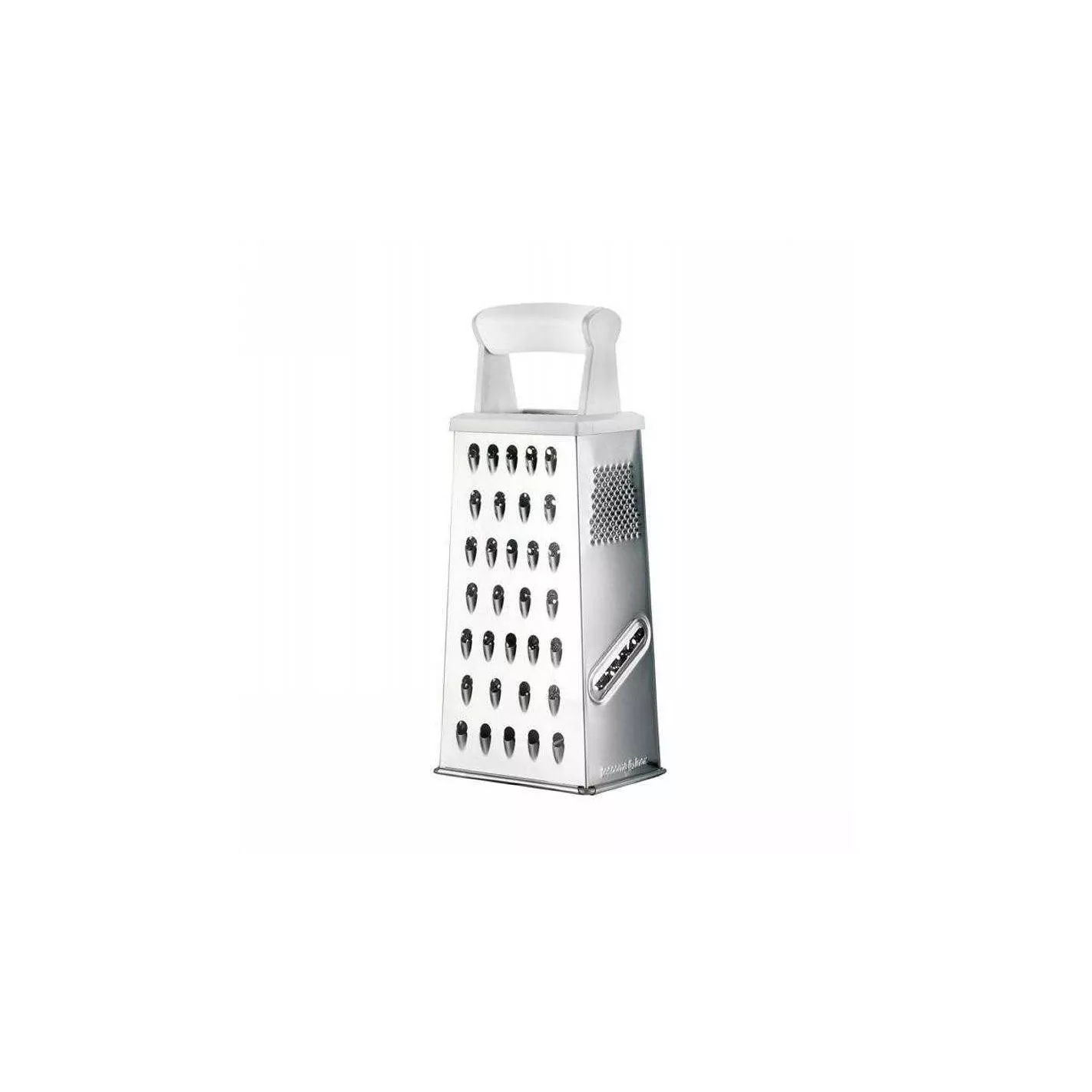 Excelente para rallar y cortar de manera fácil y rápida todos los tipos comunes de alimentos. Fabricado en acero inoxidable de alta calidad, mango ergonómico de plástico resistente.