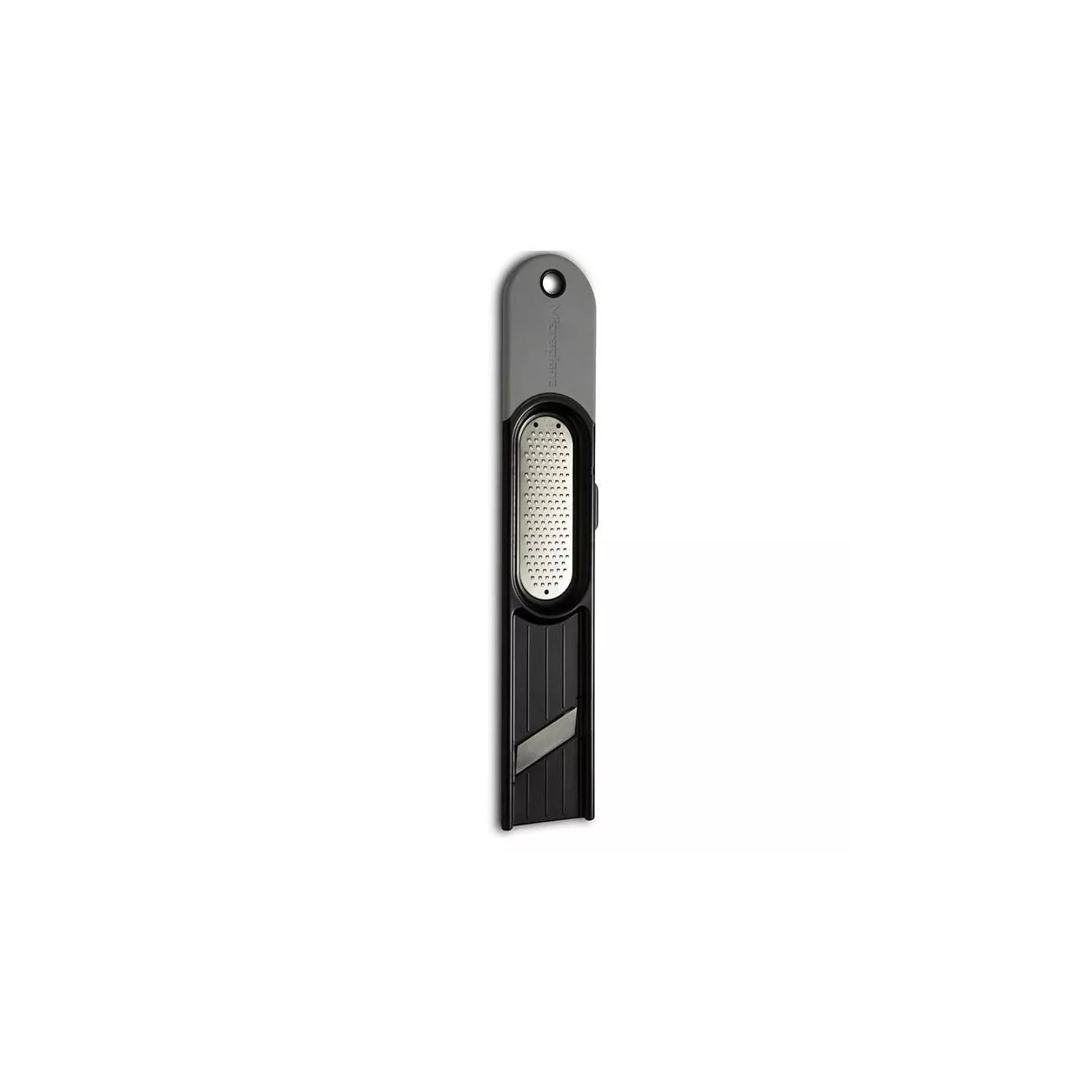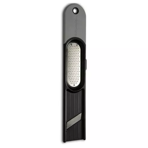 La herramienta de jengibre Microplane 3 en 1 simplifica la tarea de preparar el jengibre. Puede pelar, cortar y rallar el jengibre de forma rápida y eficiente con esta herramienta. La base antideslizante y el mango son cómodos y estables. Sujete la herramienta en ángulo o colócala plana sobre una superficie para cortar o rallar. Las cuchillas están hechas de acero inoxidable y son aptas para lavavajillas.