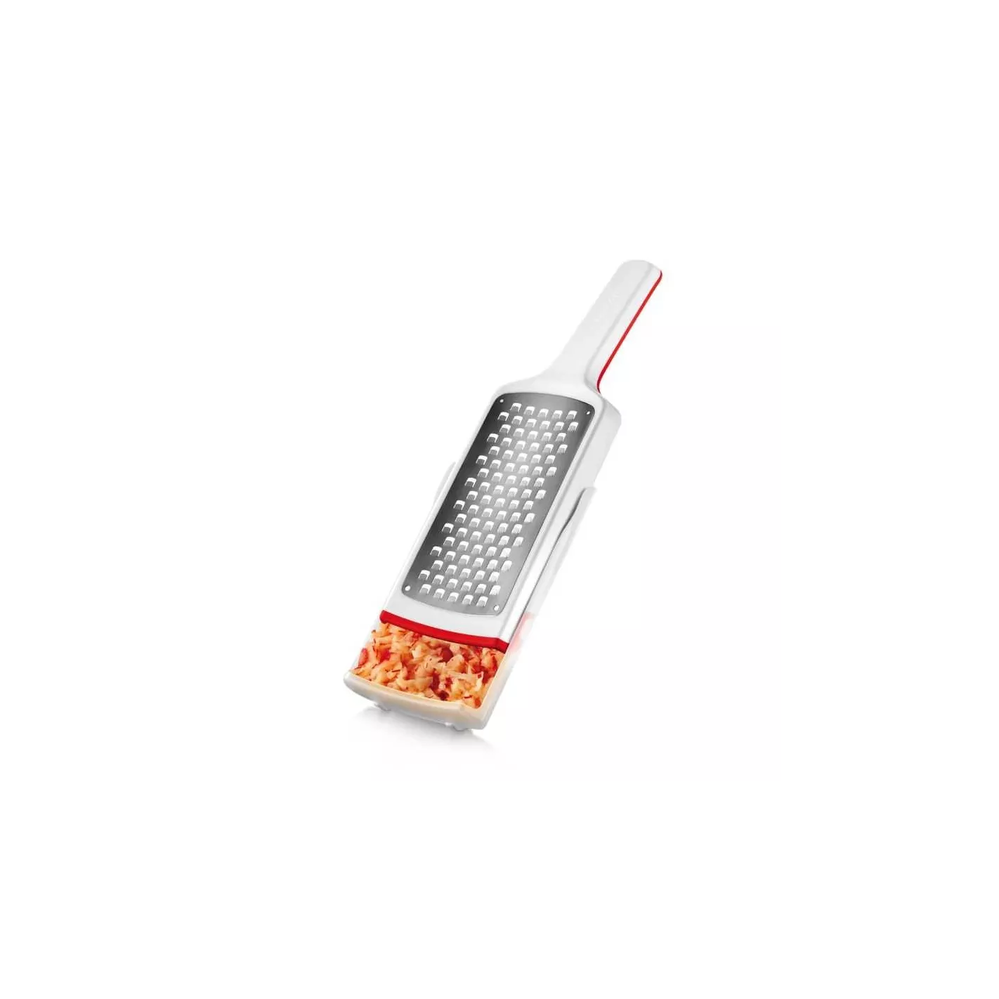 Este rallador recolector está diseñado para facilitar la tarea de rallar alimentos y recogerlos en un mismo recipiente, manteniendo el área de trabajo limpia y organizada. Sus orificios medianos permiten obtener ralladuras de tamaño intermedio, ideales para quesos, vegetales, frutas y más.