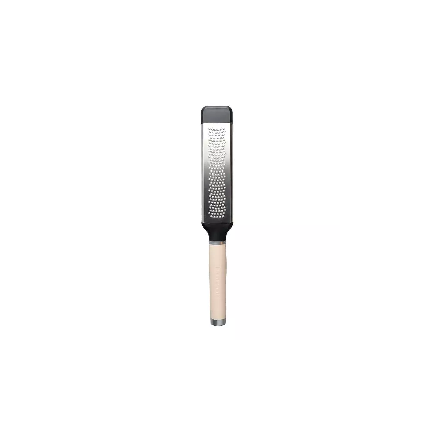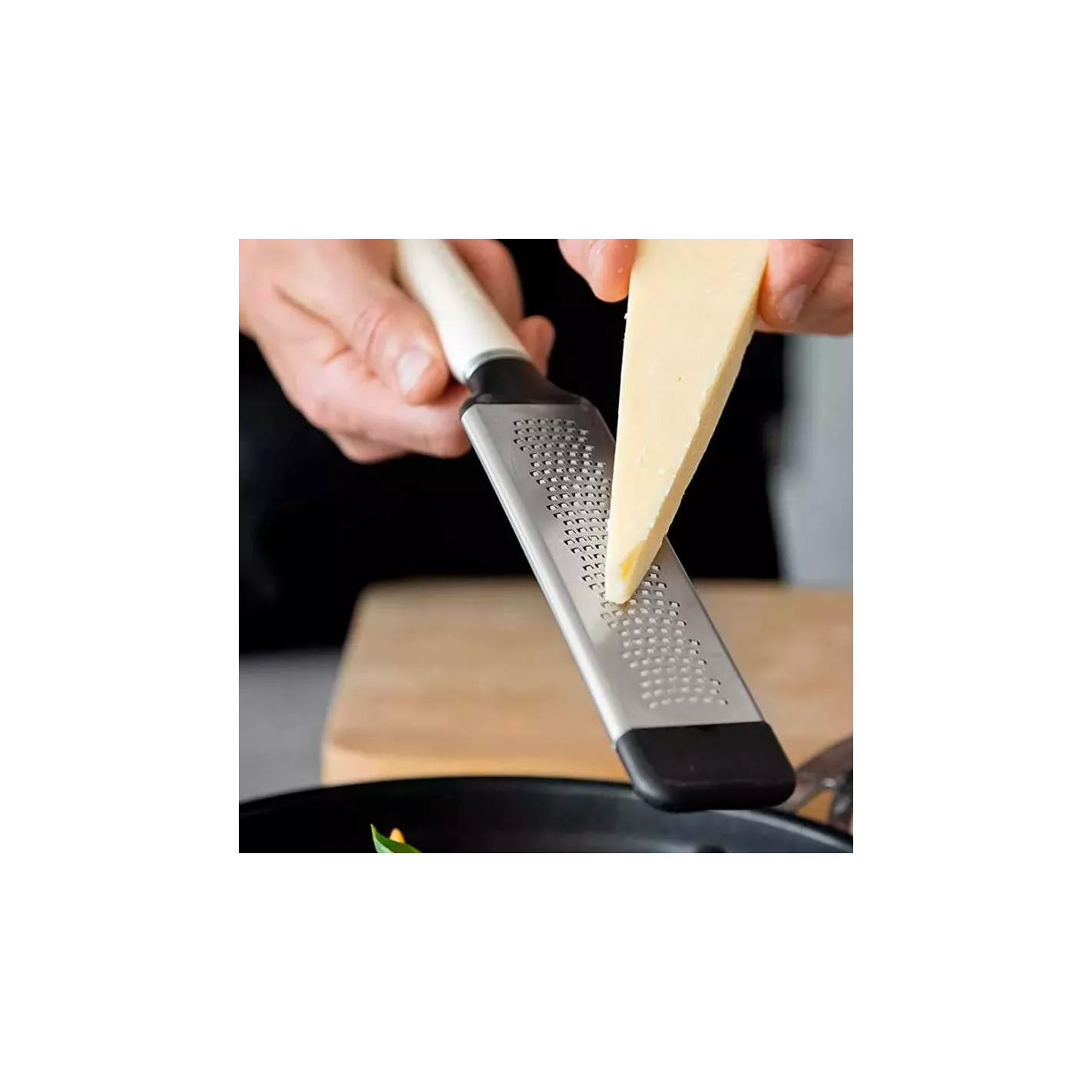 Ideal para rallar ingredientes como jengibre, nuez moscada y chocolate, así como para rallar limones, limas y otras frutas cítricas. Cuenta con microdentaduras únicas que rallan en dos direcciones para mayor velocidad y eficiencia. La hoja de acero inoxidable es extra afilada, lo que permite obtener resultados más rápidos al rallar o rallar. La combinación de un mango y una base de silicona brinda la opción de rallar directamente en un tazón, sobre una tabla de cortar o desde cualquier superficie plana. El mango está bien equilibrado y diseñado ergonómicamente para brindar comodidad y un funcionamiento suave.USO: DOMESTICO