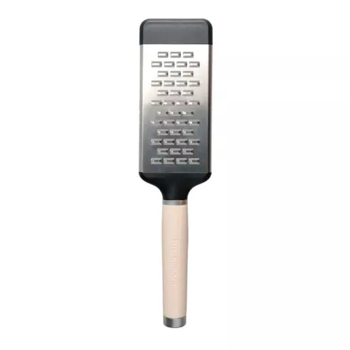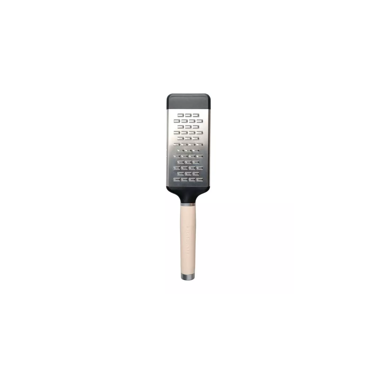 Es ideal para rallar quesos duros, chocolate y una variedad de verduras. La hoja de acero inoxidable es extra afilada, lo que permite obtener resultados más rápidos al rallar. La combinación de un mango y una base de silicona brinda la opción de rallar directamente en un tazón, sobre una tabla de cortar o desde cualquier superficie plana. El mango está bien equilibrado y diseñado ergonómicamente para brindar comodidad y un funcionamiento suave.