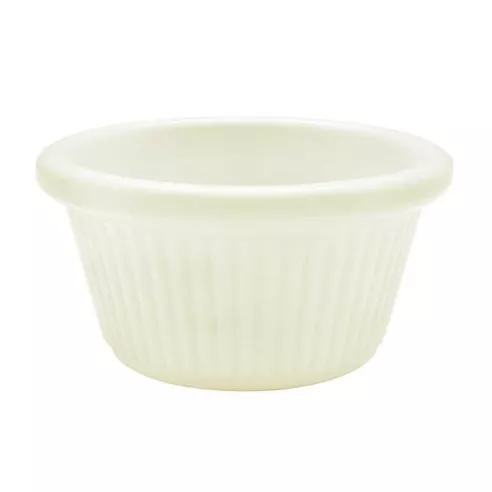 Estos Ramekin para 2 onzas son prácticos para eventos de catering. Cada pieza de esta colección está hecha de melamina, un plástico duradero, resistente a la rotura, no tóxico y resistente al calor. La melamina puede soportar temperaturas de 32° F a 220° F (0° C a 120° C). La melamina no es apta para microondas, pero es apta para lavavajillas (muy recomendable para baja temperatura, solo en la rejilla superior). Cuando se coloca boca abajo sobre una mesa, un plato de melamina bien elaborado permanece recto y plano, sin un espacio entre la mesa y el borde.