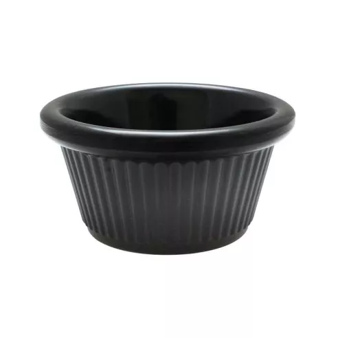 Este ramekin es un tazón pequeño que será perfecto para servir varios platos. Al ser plano, este ramekin ranurado de 2 onzas se puede usar para servir porciones individuales de salsas, salsas, helados, guarniciones y condimentos.Hecho