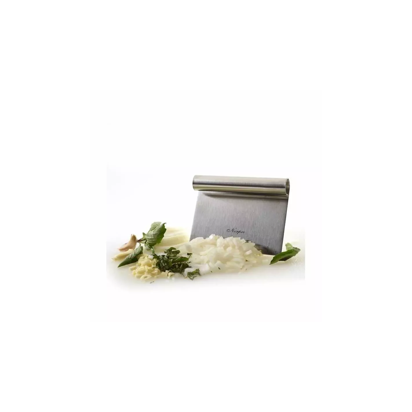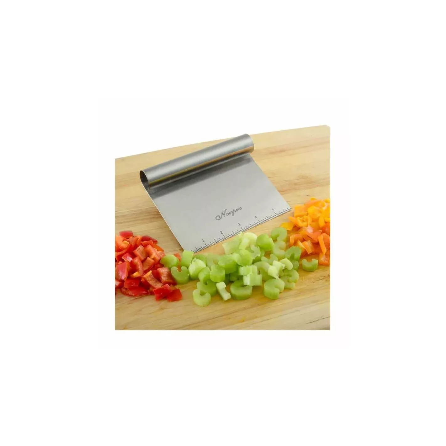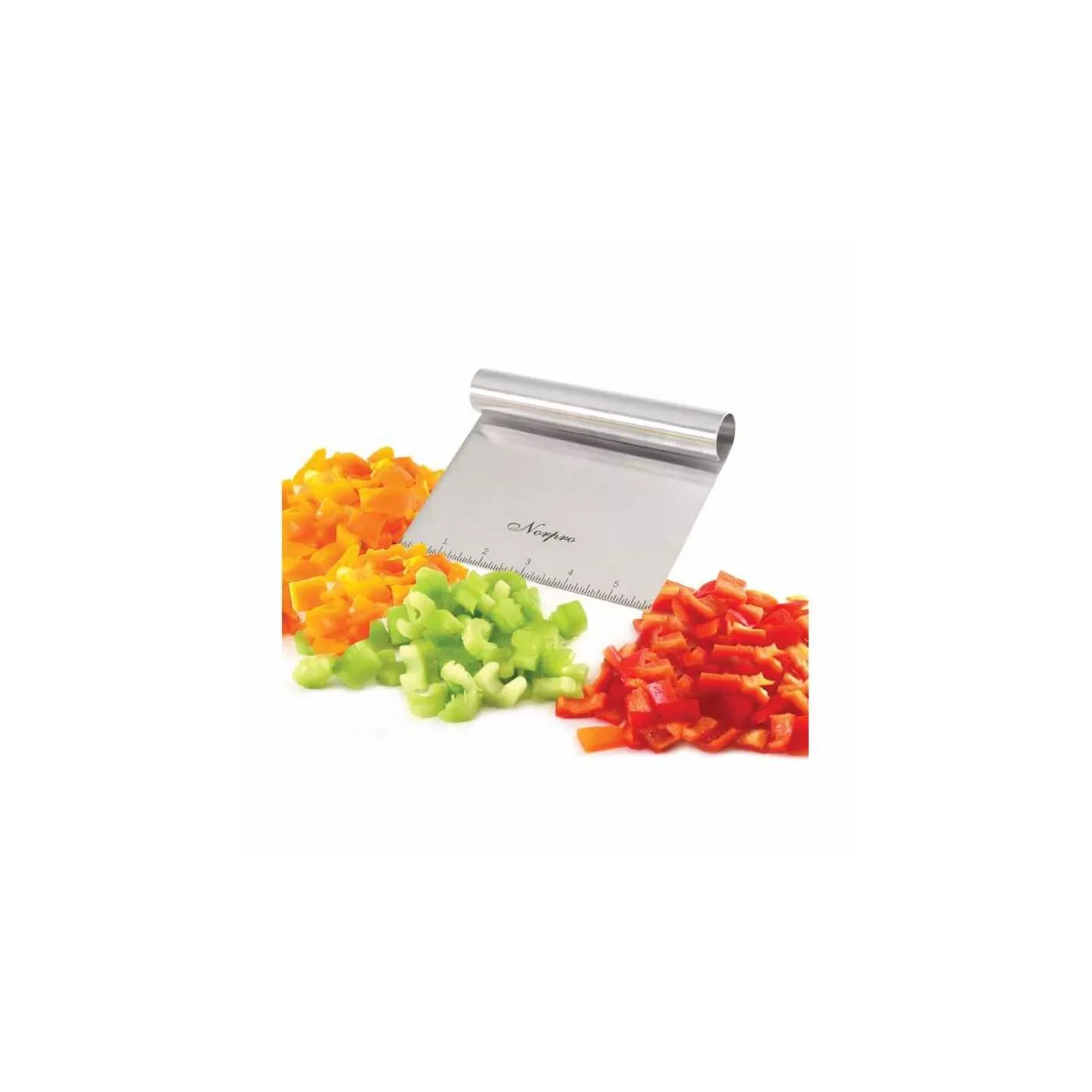 Hecho de acero inoxidable duradero y resistente, esta herramienta cuenta con un raspador adjunto para levantar y transportar fácilmente sus alimentos picados. Incluye guía de medición para precisión y precisión. Mide 6 pulgadas x 4 pulgadas / 15cm x 10cm. Lavado a mano recomendado.