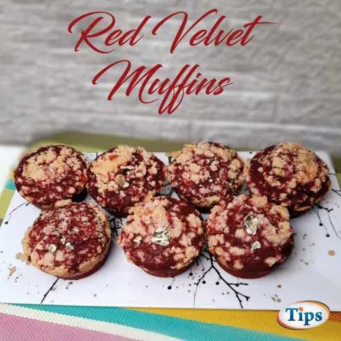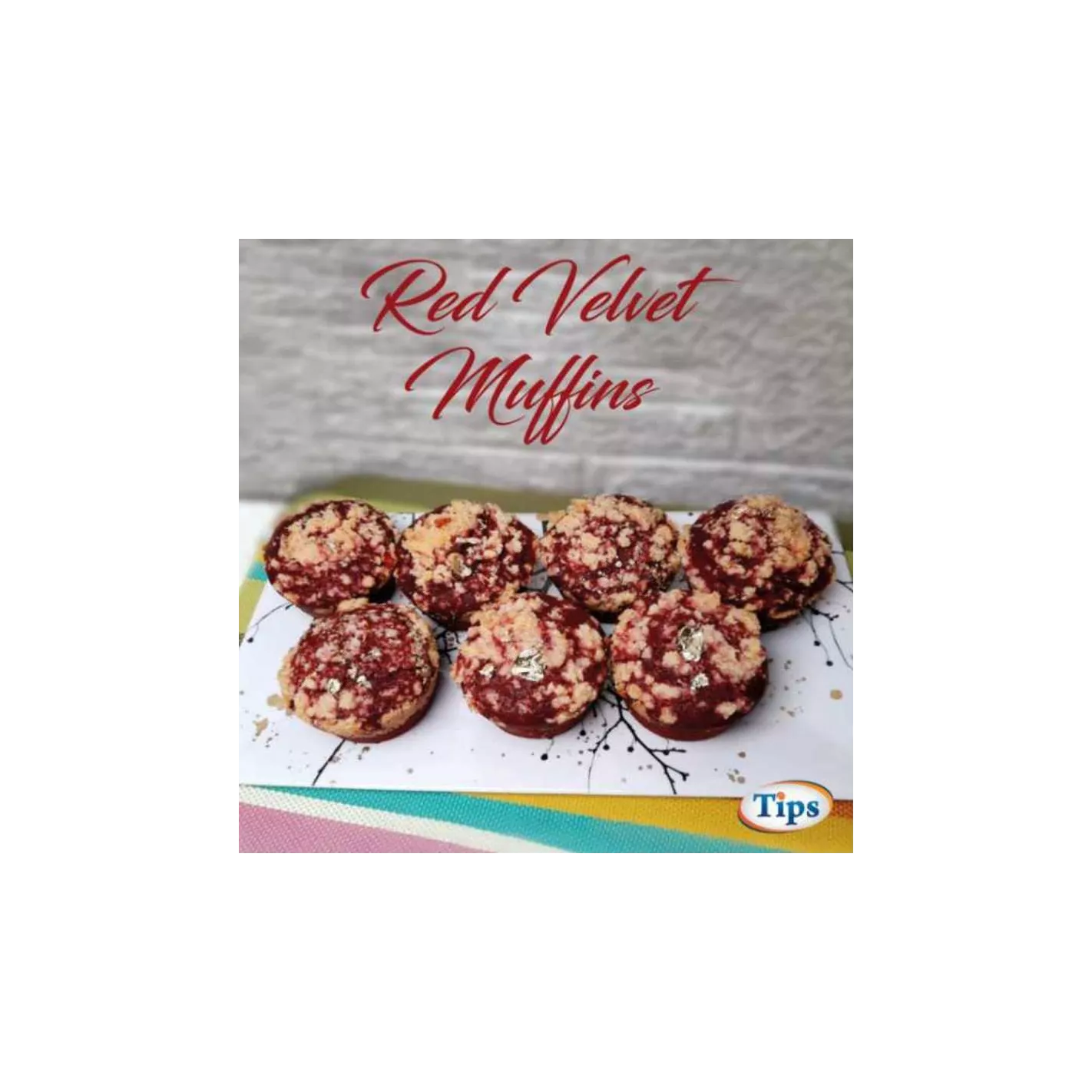 3-Engrasar los moldes para muffin con el desmold fast de cherry y colocar una porción de mezcla red velvet, luego una cucharada de relleno de queso crema y otra porción de la mezcla de red velvet (tal como se muestra en el vídeo), dar unos golpecitos al molde para emparejar, por último espolvorear con el crocante de azúcar.