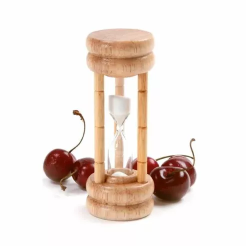 Reloj de arena con temporizador de hasta 3 minutos, perfecto para huevos y muchas otras más funciones. Su estilo de madera de haya lo vuelve un articulo de cocina de lujo y su tamaño de solo 10 centímetros permite que sea apto para guardar en cualquier zona de su cocina
