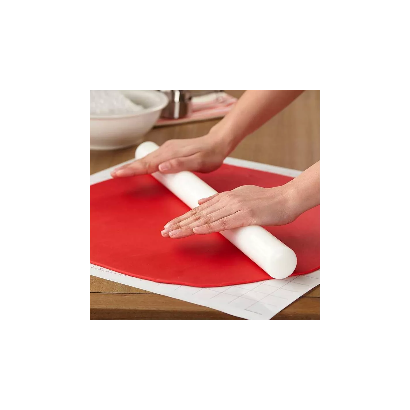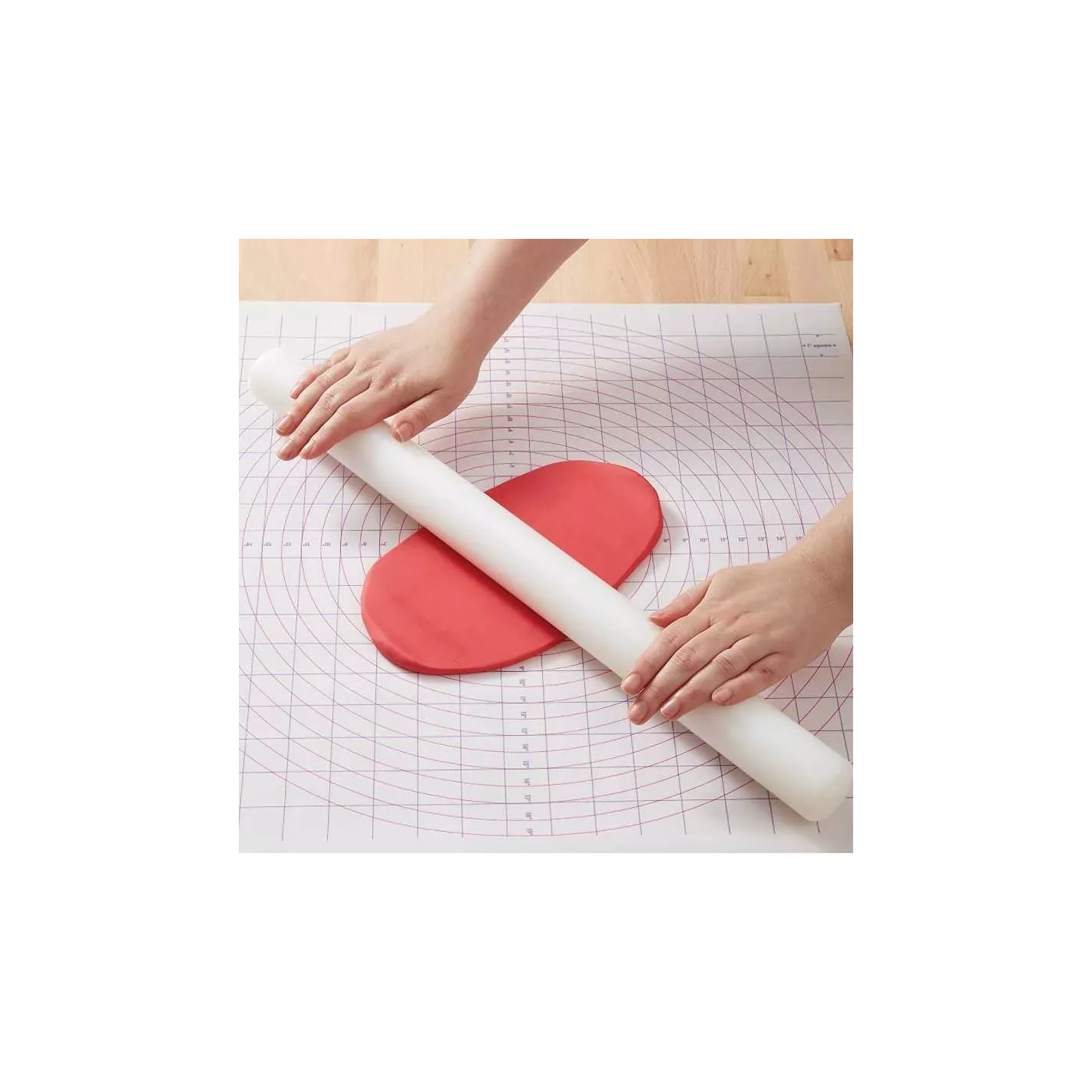 Su diseño extra ancho y suave es perfecto para cubrir pasteles con fondant extendido. La superficie antiadherente hace que manipular grandes piezas de fondant sea fácil. También es excelente para extender masa de repostería y cortes de pastel.