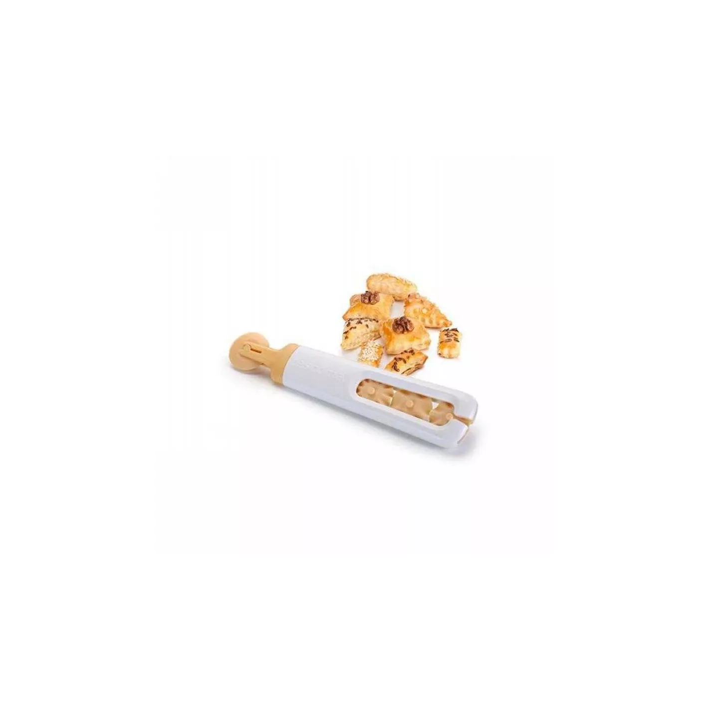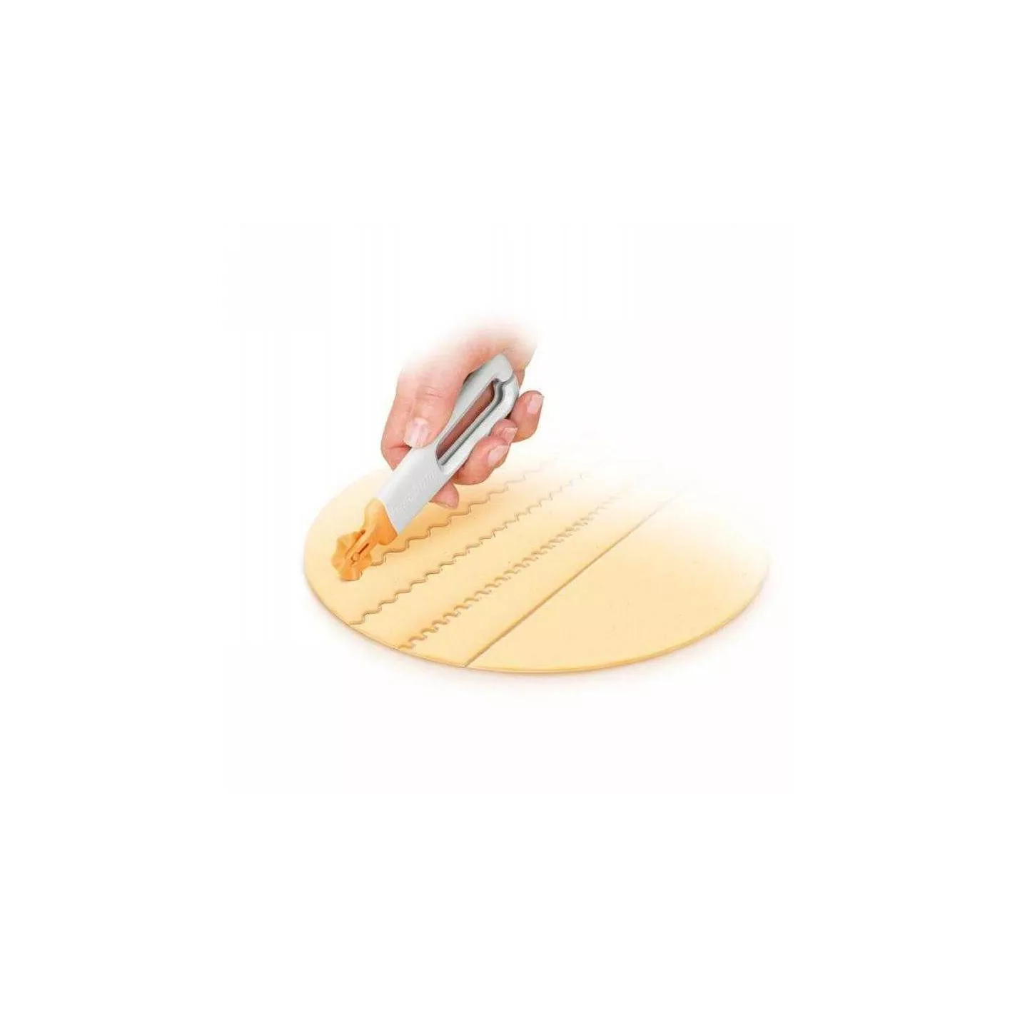 Está roldana está diseñada para cortar las pastas y las masas caseras favoritas de manera sencilla. Además, también se puede utilizar para cortar y hacer pasta fresca casera y preparar tus propios raviolis caseros, espaguetis, tallarines, etc. Cuenta con 4 cortadores de diferentes formas intercambiables y está fabricado con los materiales de mejor calidad que no dañan la superficie. Este artículo de cocina para repostería y pasta es apto para lavavajillas.