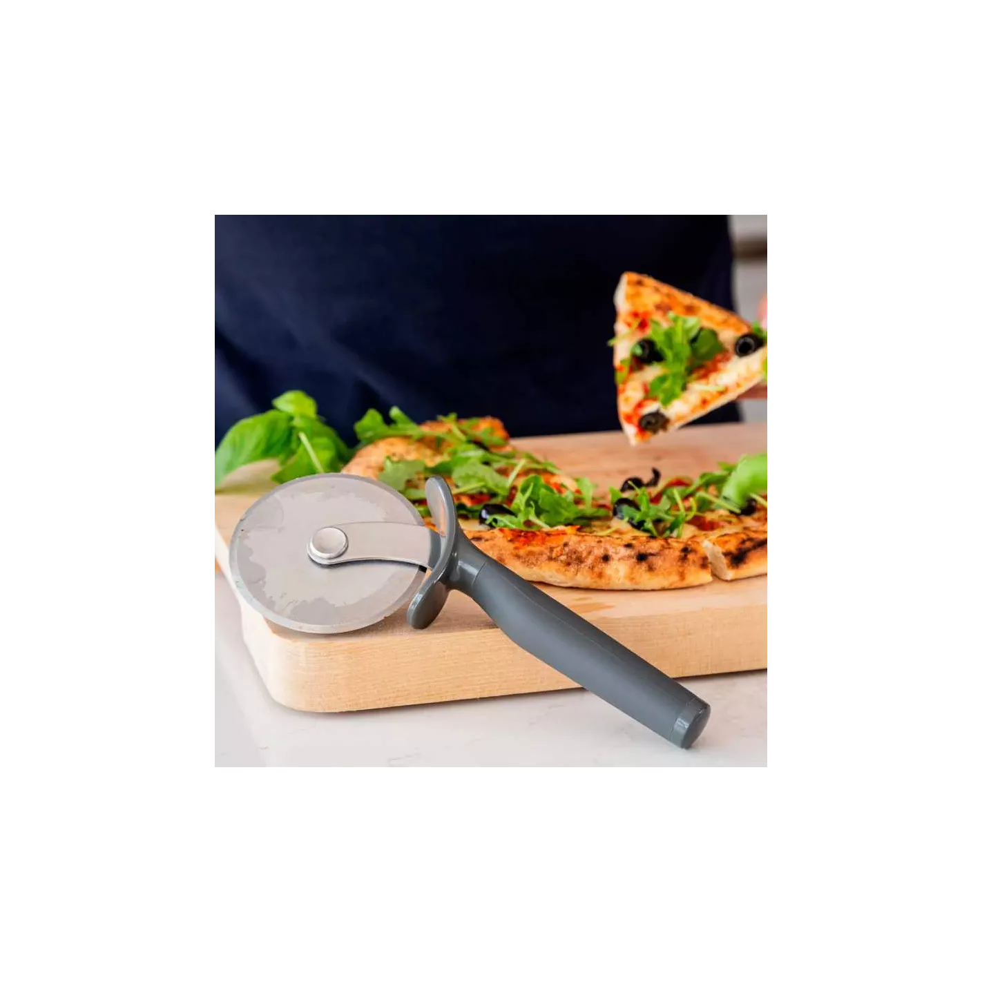 Este cortador de rodillos cuenta con una cuchilla de acero inoxidable resistente que corta la masa de pizza más gruesa con facilidad y está en ángulo para ofrecer una comodidad y un rendimiento óptimos. El protector de dedos incorporado proporciona seguridad adicional, mientras que un mango ergonómico proporciona un agarre cómodo.