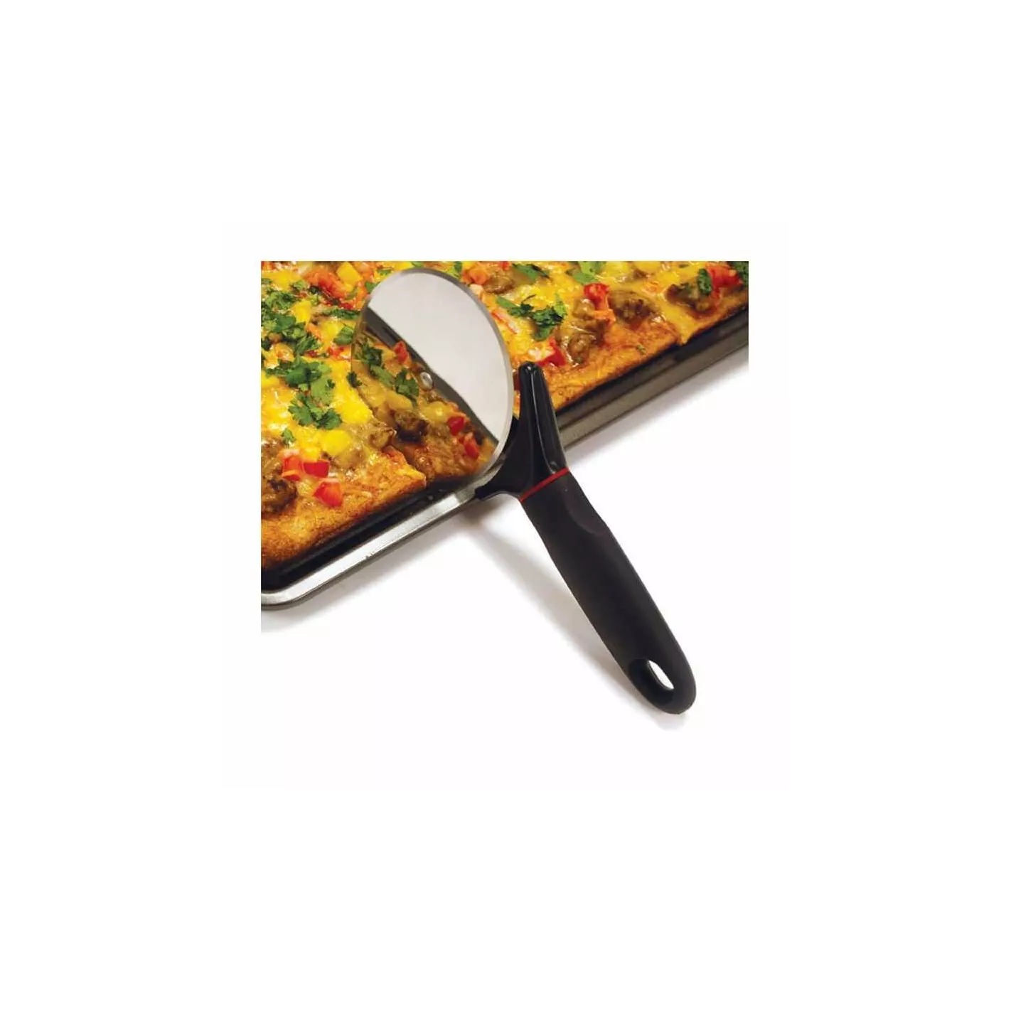 Con esta roldana podrá cortar de forma eficiente la pizza en pedazos iguales sin dejar medios cortes ya que posee un gran filo y conjunto. Su agarre maziso le hará posible tener un mejor control al momento partirCOLOR: NEGRO