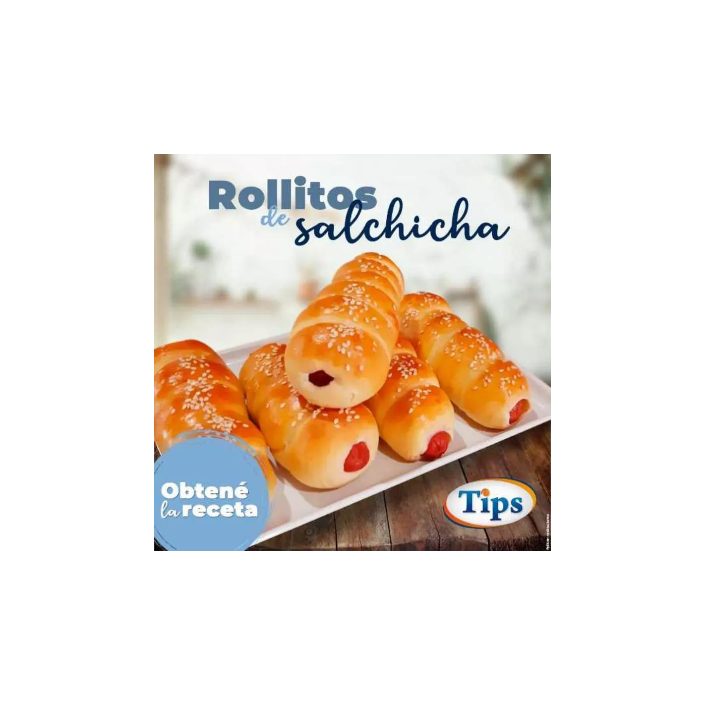 3.Dosificamos en porciones iguales, formamos una tirita con cada una y envolvemos la salchicha formando un rollito.