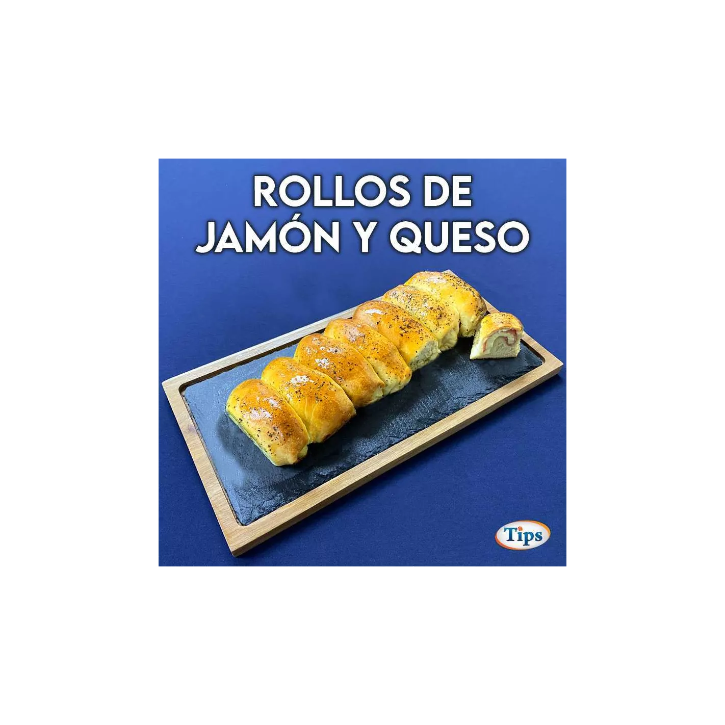 5.Estire, rellene con el jamón y el queso y forme un rollo.