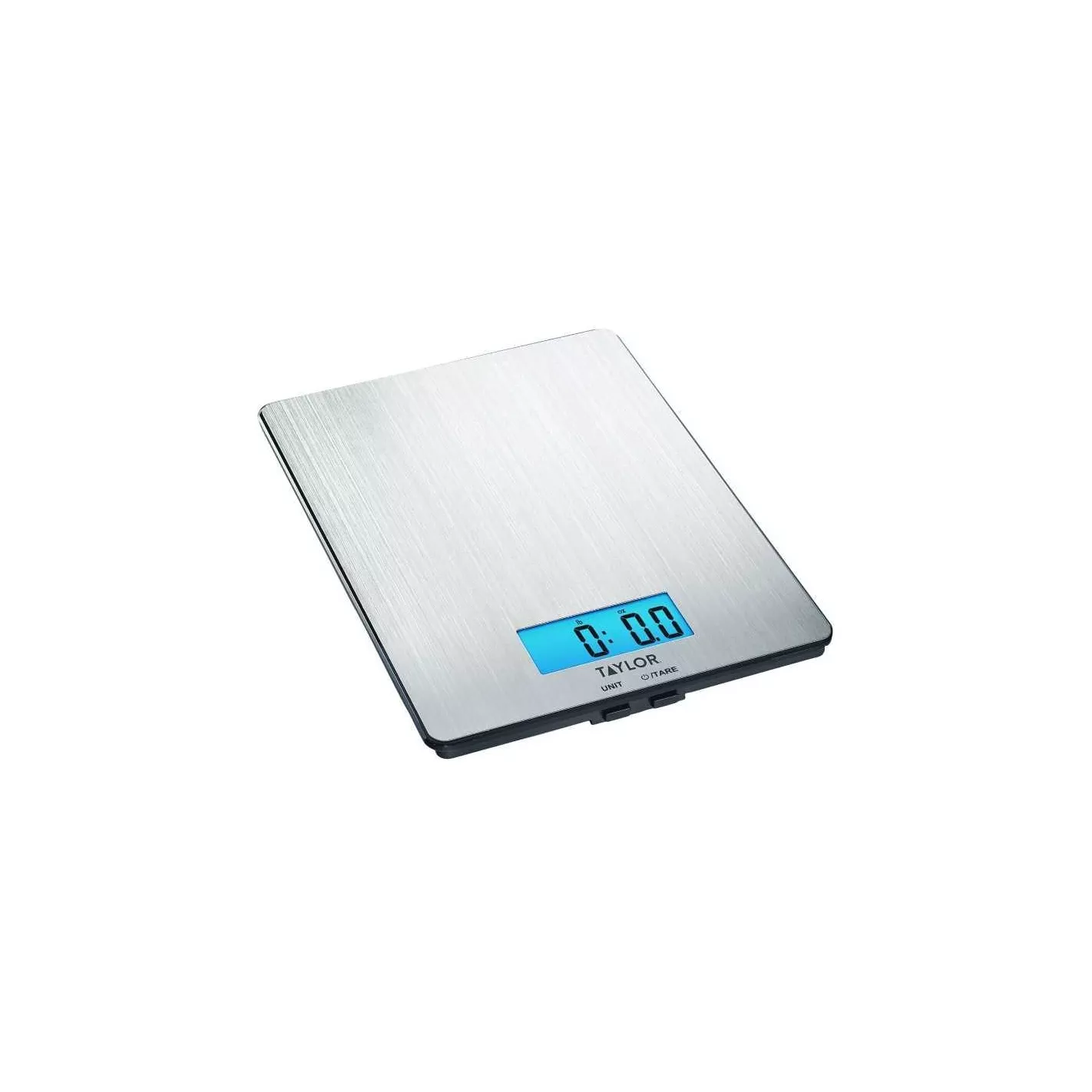 Delgada y elegante, la báscula de cocina de acero inoxidable agrega una apariencia moderna a cualquier cocina. La superficie de acero inoxidable apto para uso alimentario es resistente a las manchas y no absorbe olores. Cambie convenientemente entre libras y kilogramos. Las funciones de tara permiten pesar y agregar múltiples ingredientes. La luz de fondo azul brillante hace que la pantalla sea fácil de leer con cualquier iluminación. La escala ultrafina tiene solo 0,6 pulgadas de grosor.