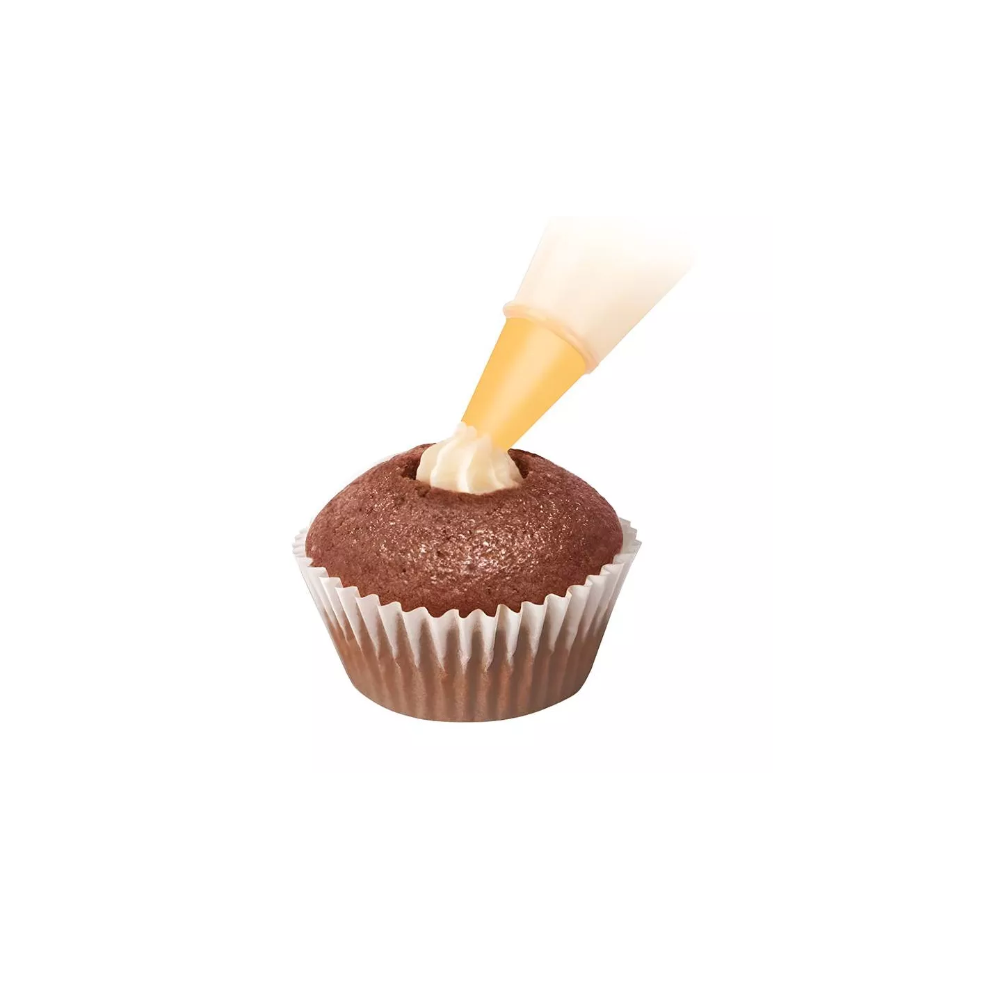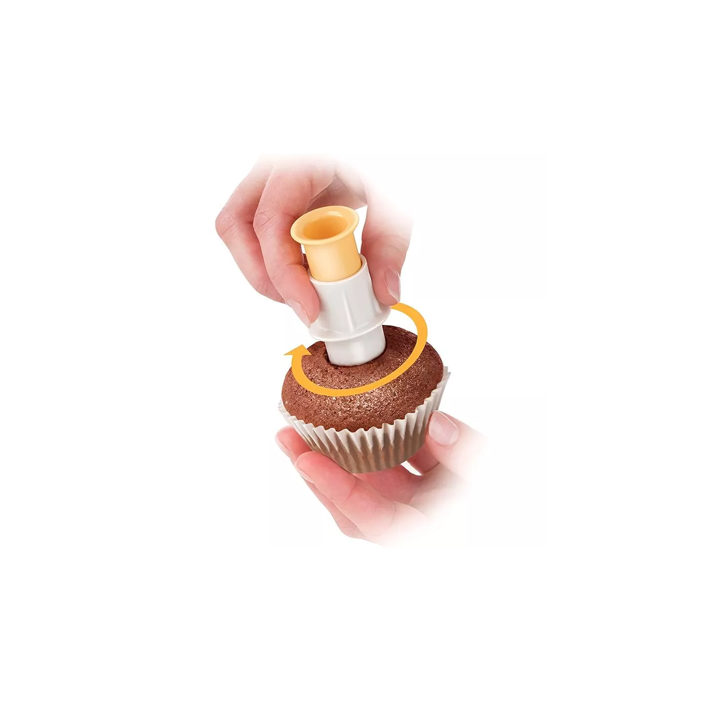 ¡Agrega una dulce sorpresa dentro de tus cupcakes o muffins! Esta herramienta funciona como una palanca y crea un agujero perfecto simplemente presionando el émbolo en el extremo. Tus postres están listos para ser rellenados con nata, chocolate, mermelada. Dimensiones: 1,7 centímetros y 2,2 centímetros de diámetro.