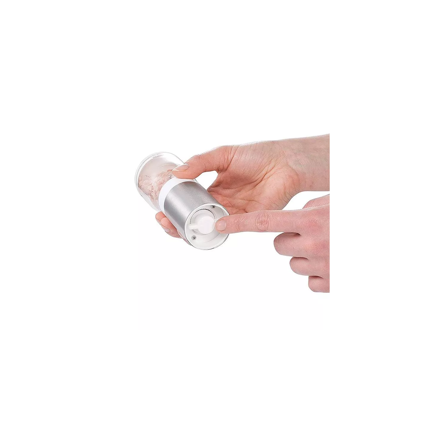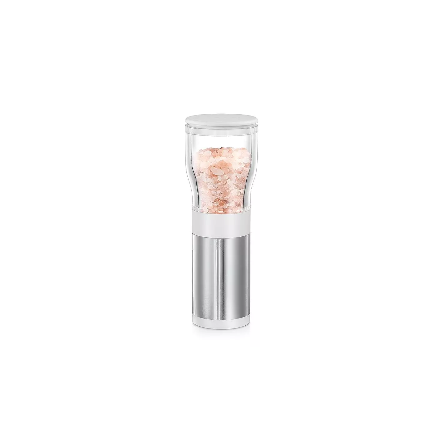 Este molinillo de sal de mesa, fabricado en acero y plástico, tiene un molinillo de cerámica con grado de molienda ajustable. Es transparente, por lo que puedes comprobar el nivel de sal en su interior. Tiene tapa para recoger los residuos de sal. Perfecta para moler sal gruesa en el momento, directamente sobre los platos a condimentar. Combínalo con los otros molinillos de la misma línea: encuentra el de pimienta, guindilla, nuez moscada y hierbas aromáticas, cada uno de un color diferente y con un molinillo específico para cada necesidad.