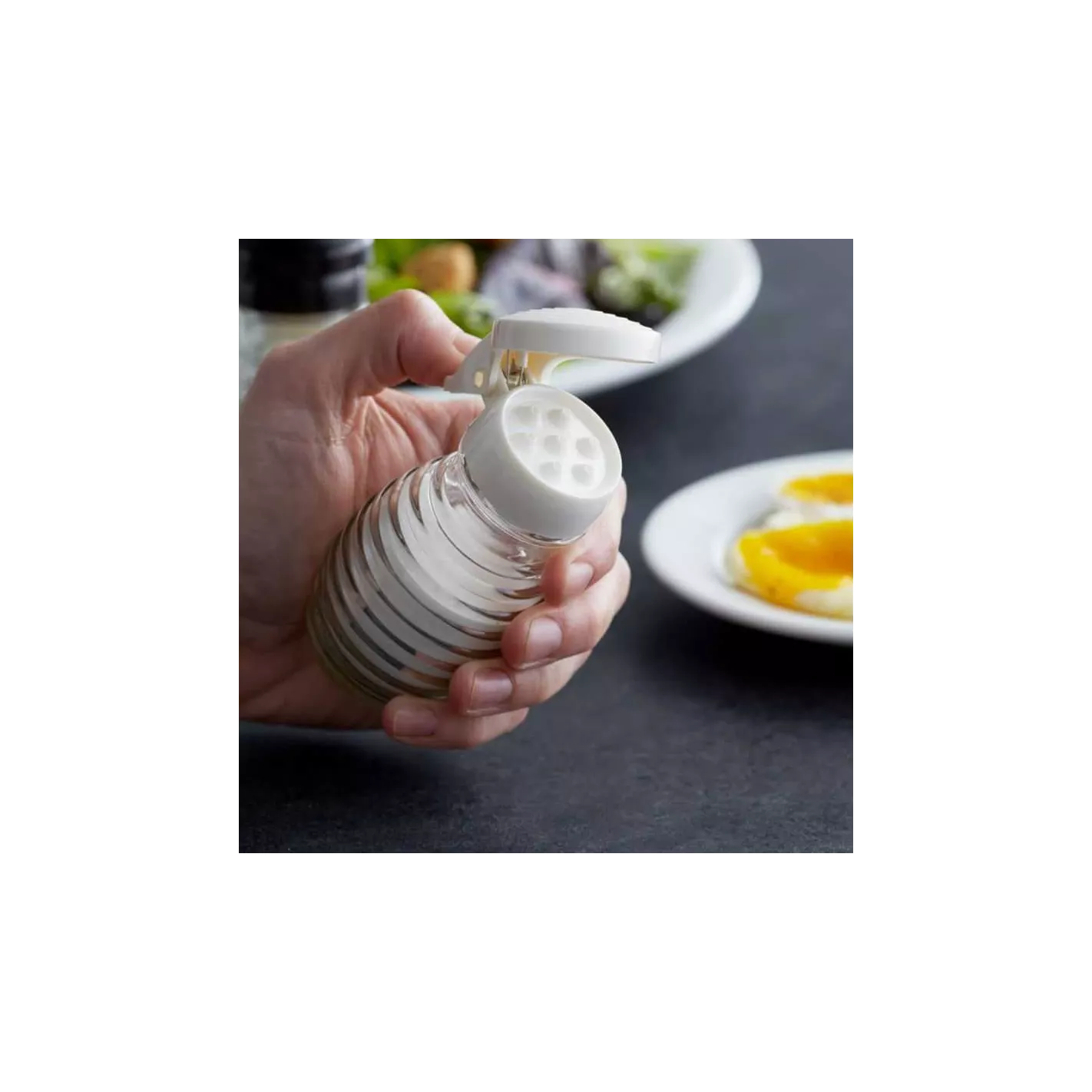Dale a tu comensal o restaurante un aspecto retro con estos salero y pimentero de vidrio colmena. Estos agitadores cuentan con un vidrio de colmena en forma de lágrima con una tapa de ABS a prueba de humedad, perfecto para almacenar y servir sal y pimienta de manera eficiente. Las tapas a prueba de humedad especialmente diseñadas mantienen la humedad fuera, lo que las hace imprescindibles para todos los establecimientos con servicio al aire libre