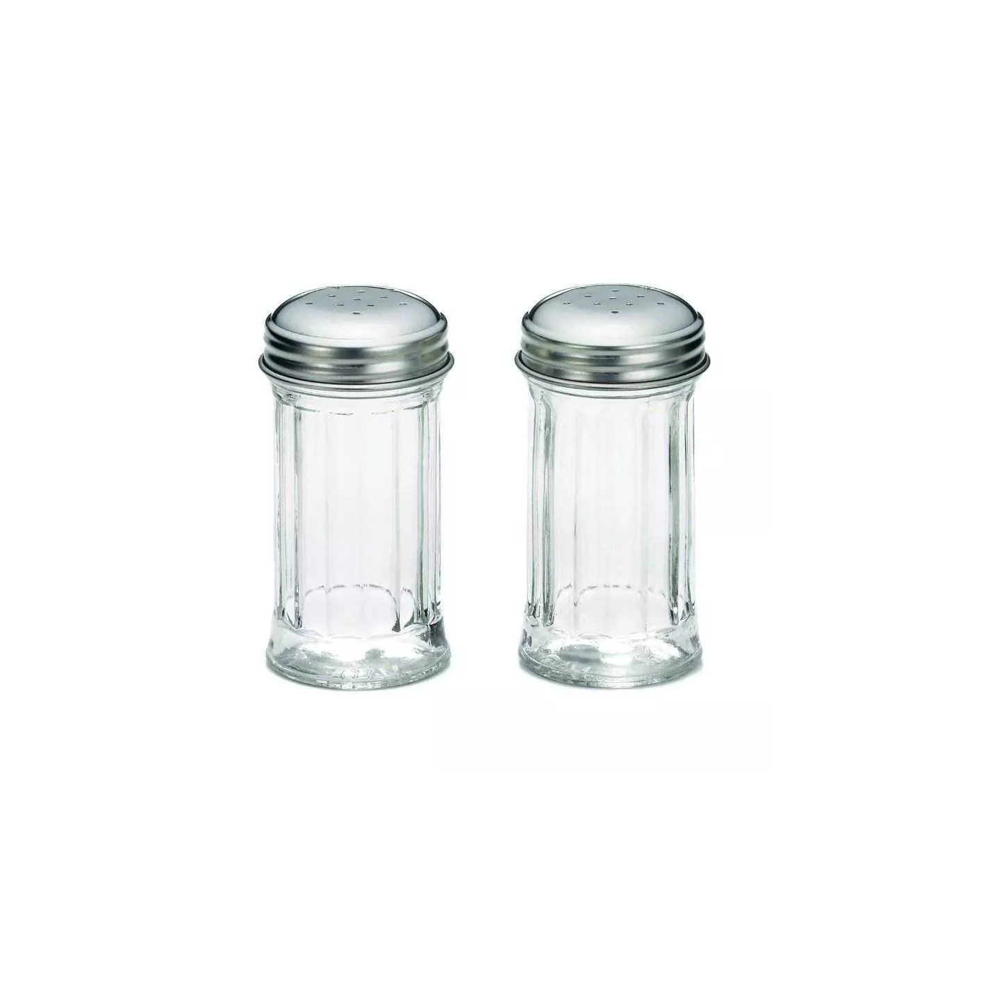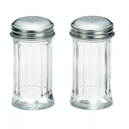 Agregue un aspecto limpio y clásico a su comensal o restaurante con estos salero y pimentero de 2 onzas . Cada recipiente tiene una tapa de acero inoxidable atornillable, ideal para un fácil llenado y limpieza. Estos agitadores presentan un estilo atemporal de vidrio estriado perfecto para cualquier tablero de mesa.