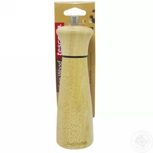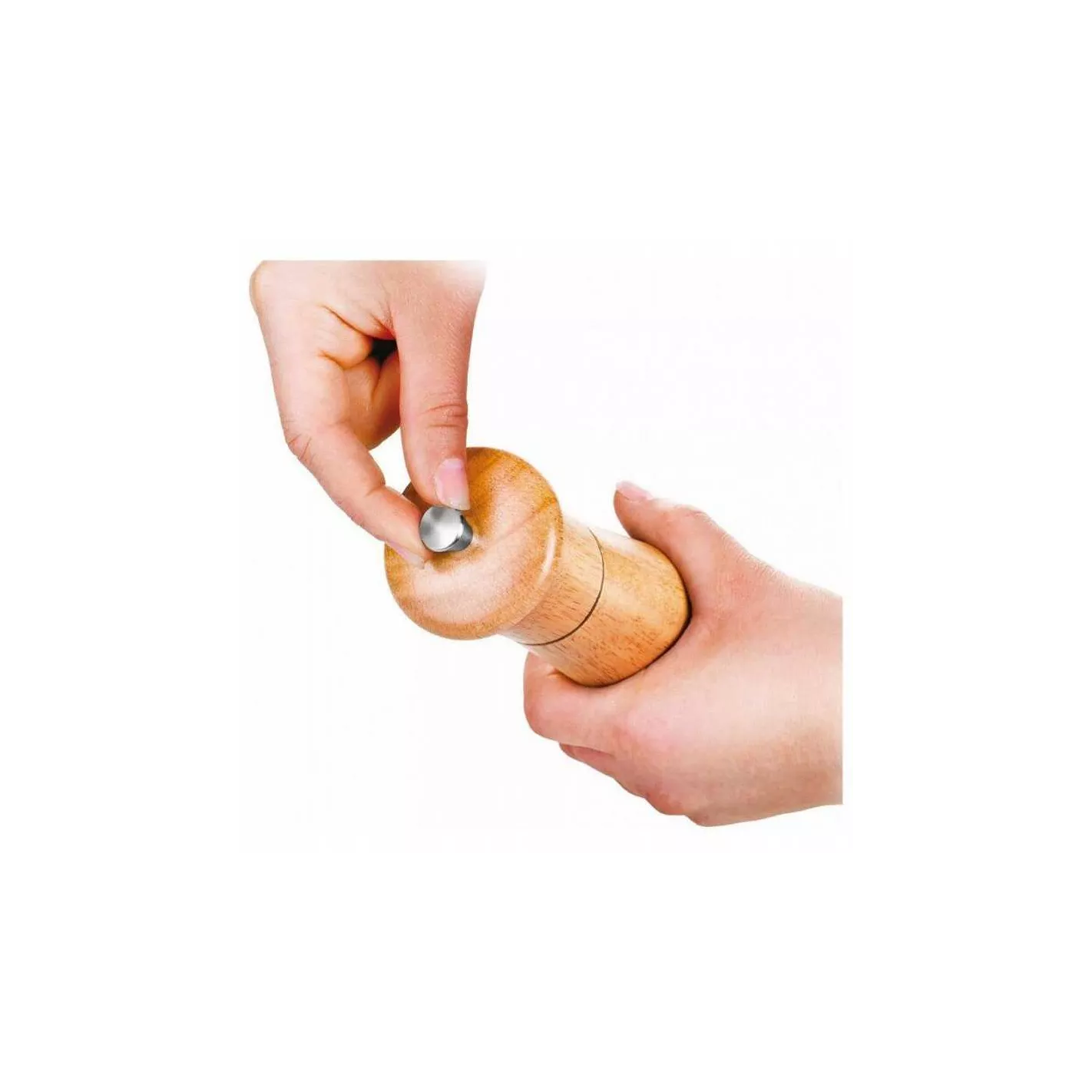 Excelente para condimentar fácilmente alimentos con sal o pimienta recién molida. Con un excelente mecanismo de fresado cerámico con tamaño de grano ajustable. Hecho de la noble madera del árbol del caucho brasileño, viene con 2 anillos de identificación para pimienta y sal. Limpiar con un paño humedecido y secar.