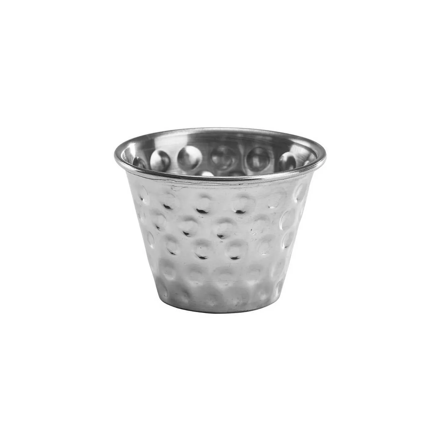 Siempre tenga tazas de salsa a mano para que pueda entregar los artículos secundarios al pedido de su cliente, las tazas de salsa son ideales para cualquier condimento o para probar muestras, esta taza de salsa está hecha de acero inoxidable y cuenta con un acabado martillado.