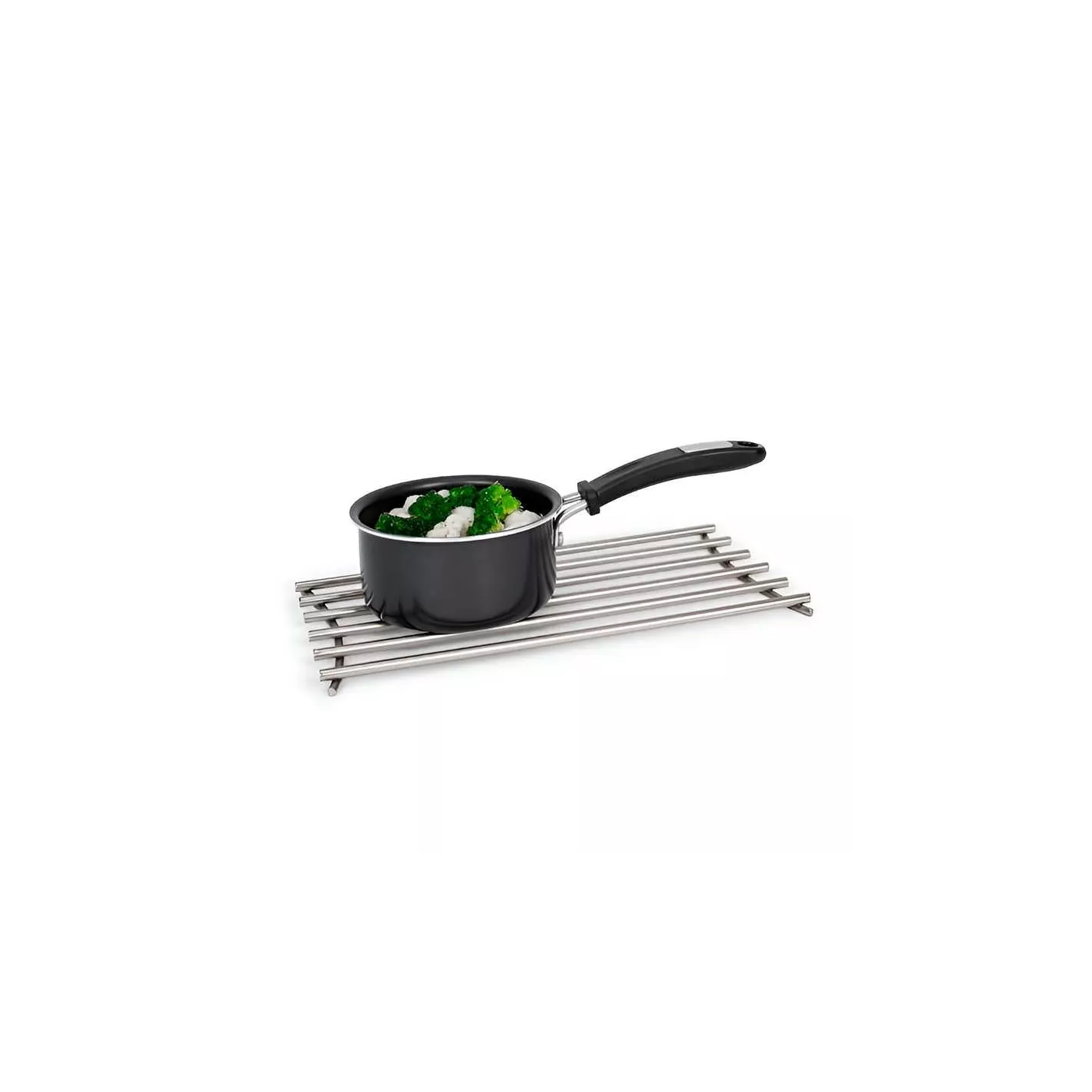 Este salvamanteles está diseñado para adaptarse cómodamente a una cazuela y es perfecto para proteger su encimera y mesa de comedor de las cacerolas y platos calientes. El salvamanteles elevado mantiene los utensilios de cocina calientes fuera de sus encimeras, evitando quemaduras, chamuscados y decoloración por el calor. El acero duradero soporta el peso de utensilios de cocina de cerámica pesados, sartenes de hierro fundido, ollas esmaltadas y fuentes de vidrio para hornear. El alambre de calibre grueso no se doblará bajo el peso de cacerolas pesadas o pasteles impresionantes, lo que lo convierte en un accesorio de cocina confiable. La base elevada ayuda a evitar que los utensilios de cocina toquen directamente las superficies.