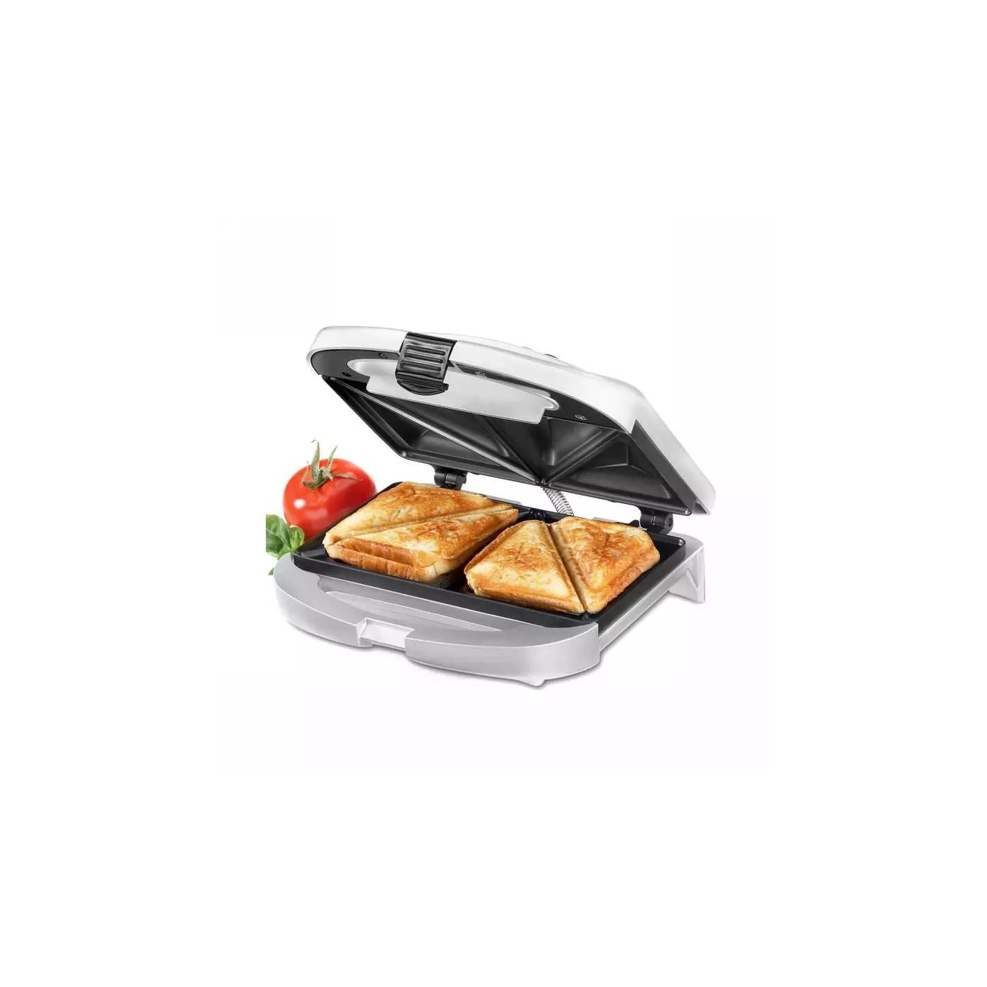 La sandwichera hace más que solo calentar; prensar sándwiches, tortillas a la parrilla e incluso tostadas francesas crujientes en un solo producto. Perfecto para dormitorios y cocinas acogedoras. La sandwichera Cuisinart puede hacer dos artículos a la vez, con una tapa de cierre que garantiza que ambos lados se cocinen uniformemente mientras que las placas antiadherentes sellan sus ingredientes favoritos. Los sándwiches de queso y las tortillas esponjosas salen a la perfección, cuenta con luces indicadoras duales que le permiten saber cuándo la parrilla está lista para cocinar y su comida está lista para comer. Las placas antiadherentes se limpian después del uso y el cierre de la tapa y la envoltura del cable facilitan el almacenamiento.