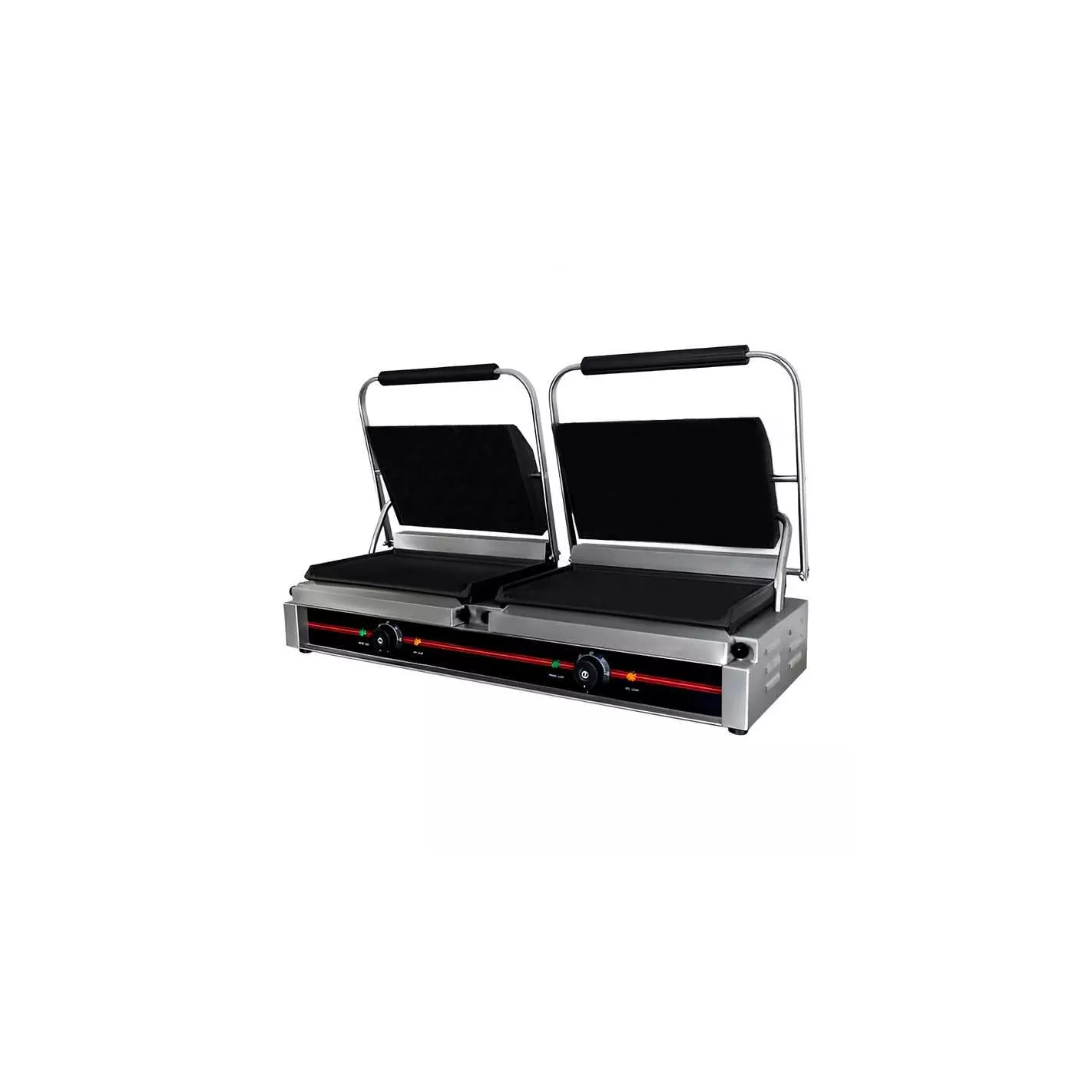 La plancha doble lisa es de uso profesional y permite preparar diferentes tipos de alimentos de forma simultánea gracias a su doble placa. Son aptas para la preparación de hamburguesas, sandwiches, carnes y vegetales. Son ideales para bares, cafeterías, food struck, etc. Fabricada en hierro fundido con superficie antiadherente.