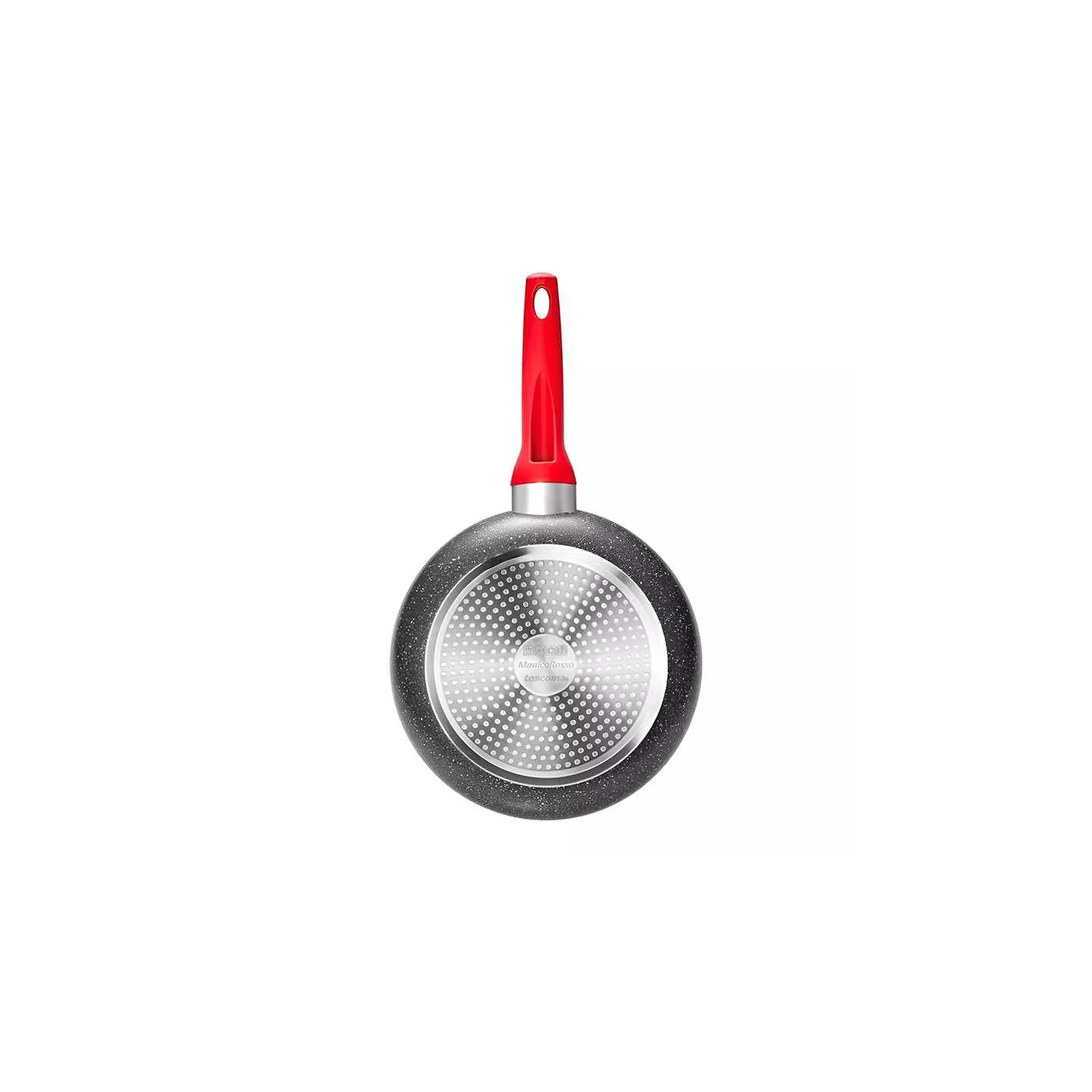 Excelente recubrimiento antiadherente con las propiedades de la piedra natural, mango antideslizante sólido para manejar de manera segura y cómoda la sartén, fondo de inducción de acero inoxidable. Apto para todo tipo de cocinas: cocinas eléctricas, de gas, vitrocerámicas y de inducción.COLOR: ROJO