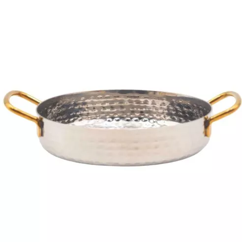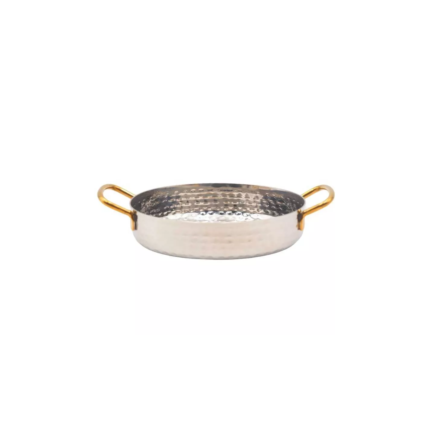 Sarten Mini Martillado de Acero Inoxidable con Agarradera Dorada de 6 x1.4 Pulgadas KING METAL MPDH25H