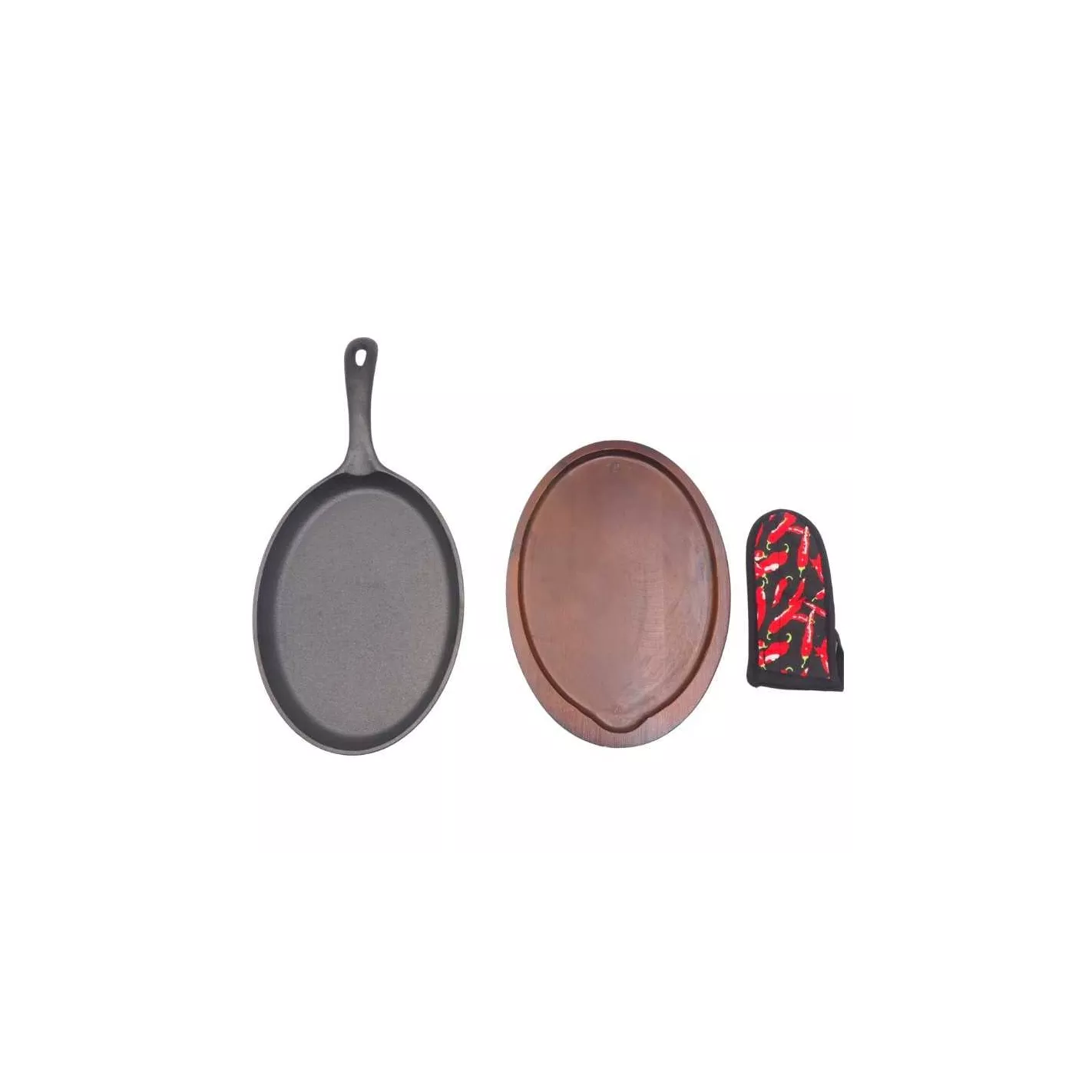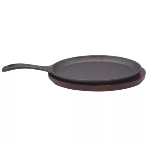 El sartén de hierro con base madera protege encimeras de mesas, será fácilmente soportar los rigores del uso de grado comercial. Permite para servir carnes, fajitas calientes, mariscos o otros platos especiales y aperitivos.