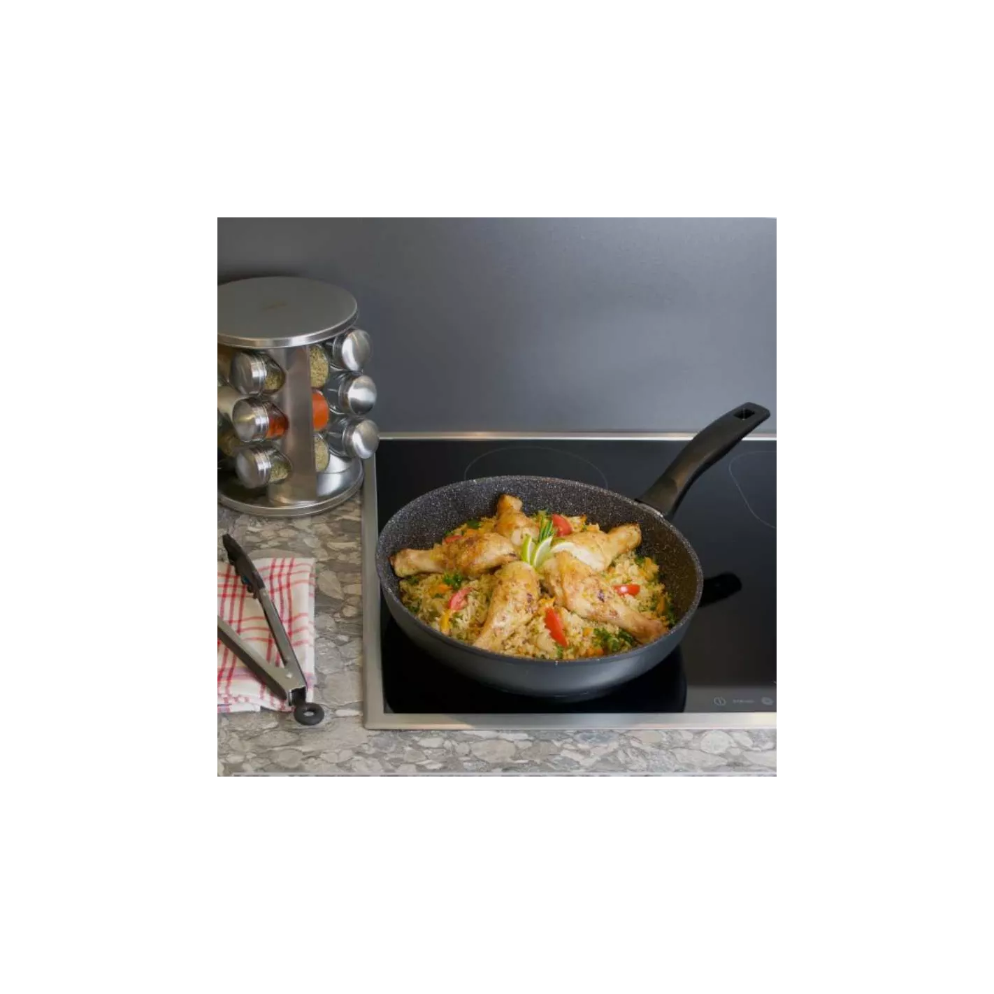 Este sartén no es demasiado grande ni demasiado pequeño, en él puede preparar su comida favorita sin tener que usar grasa o aceite adicional. Si su cocina es de inducción, electricidad o gas, con este sartén no tendrá problemas porque es antiherente y no se pega su comida. Es resistente al horno hasta 180° C.
