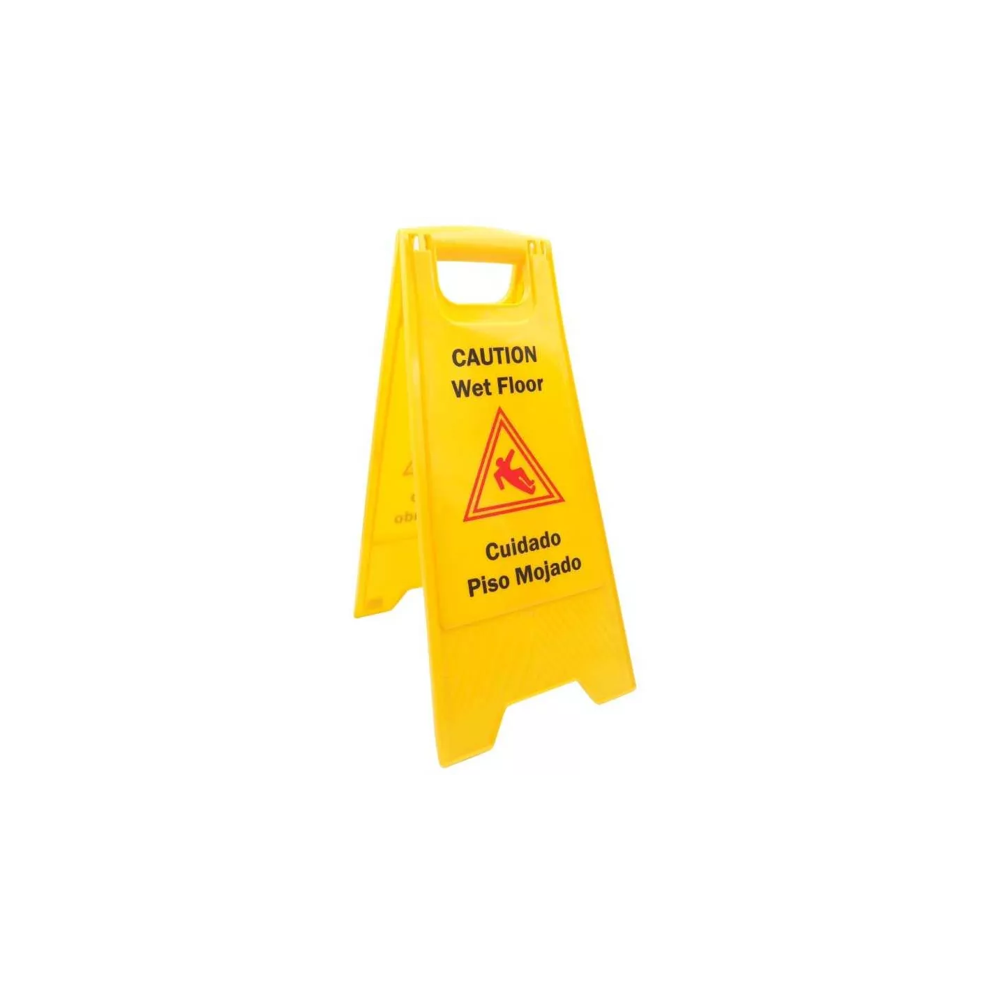 Evite lesiones en superficies resbaladizas con el letrero de precaución de piso húmedo. Este letrero de precaución de colores brillantes presenta un mensaje de advertencia de dos lados que dice "Precaución: piso mojado" en inglés y español para alertar claramente a su personal y clientes.