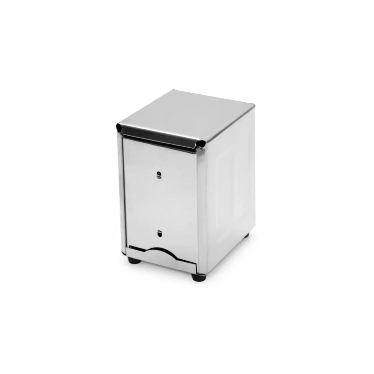 Guarde las servilletas de forma segura y téngalas a mano en su restaurante con el dispensador de servilletas de acero inoxidable corto SLNH002 de Thunder Group. Este dispensador contiene servilletas de tamaño medio que no se rompen cuando se dispensan.