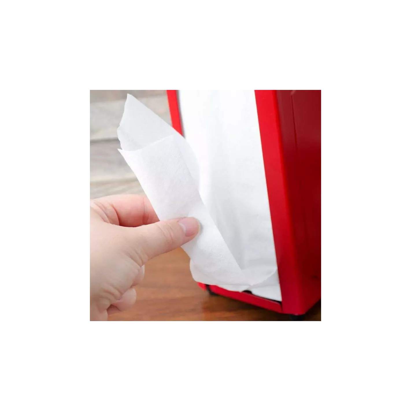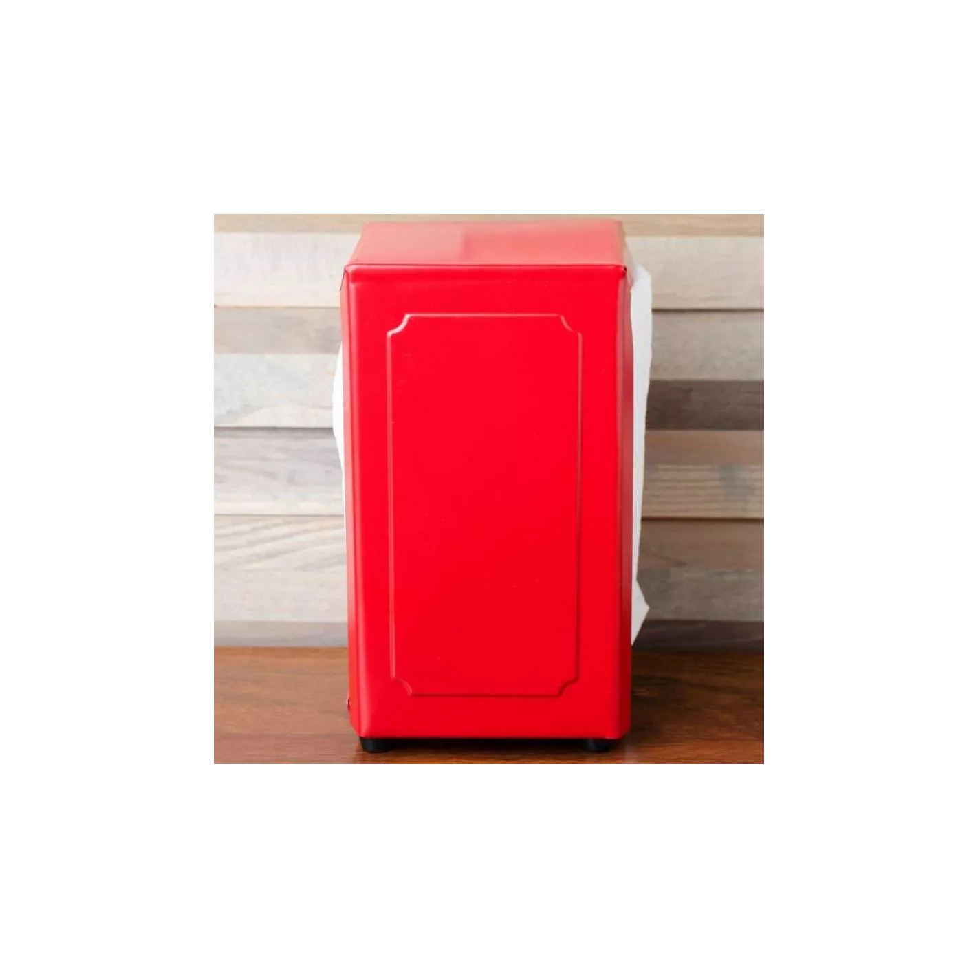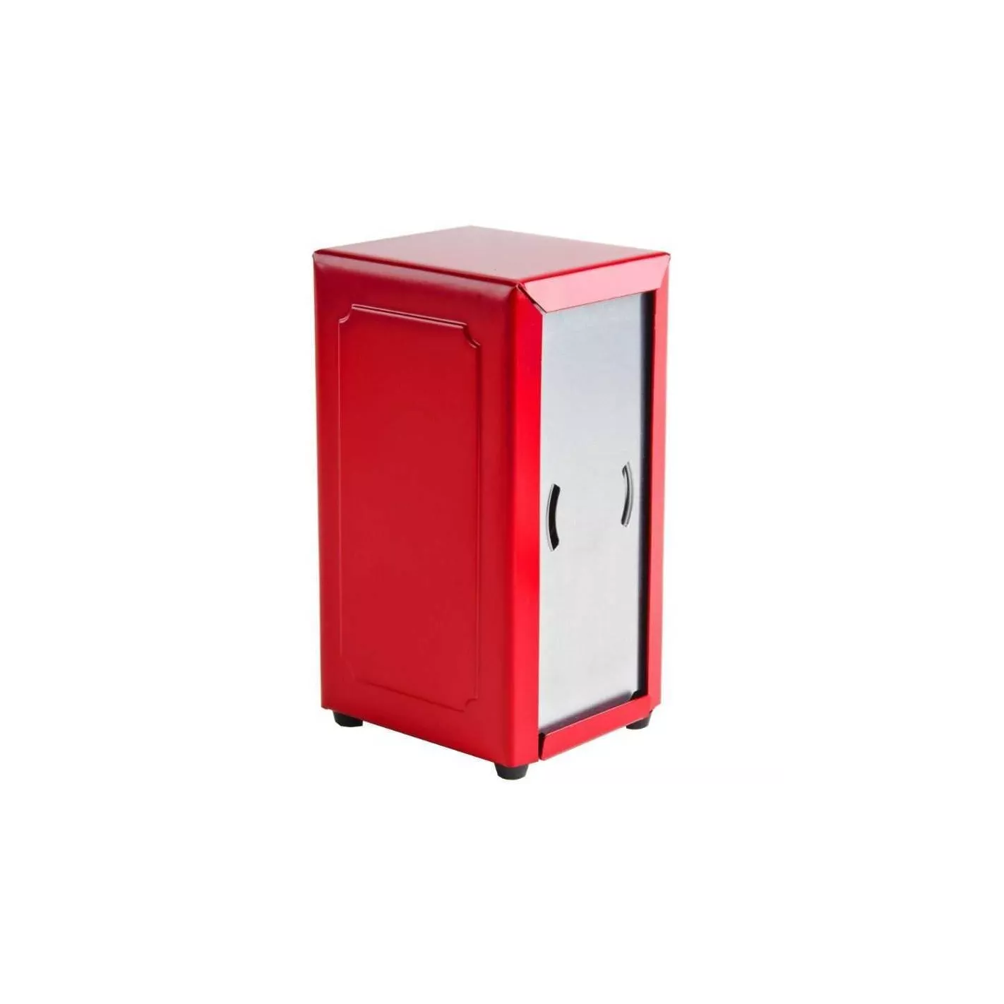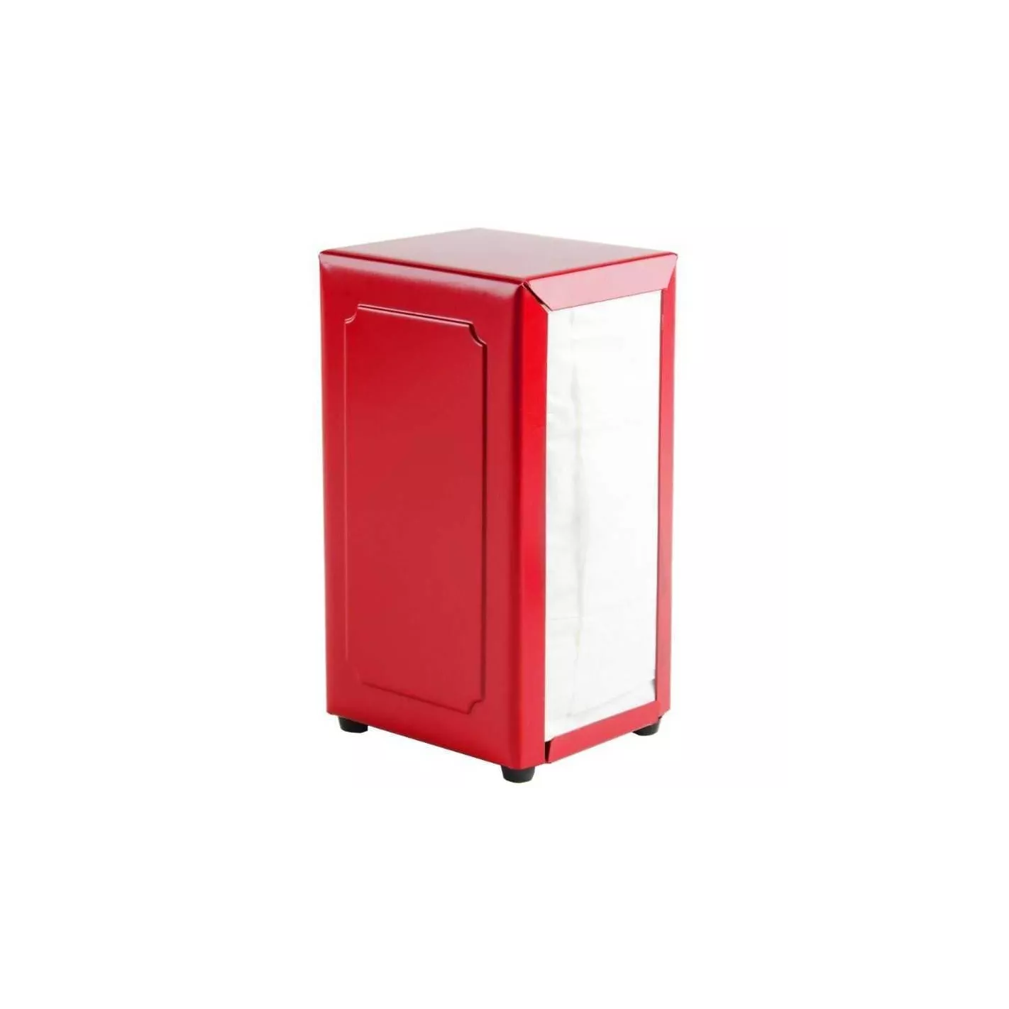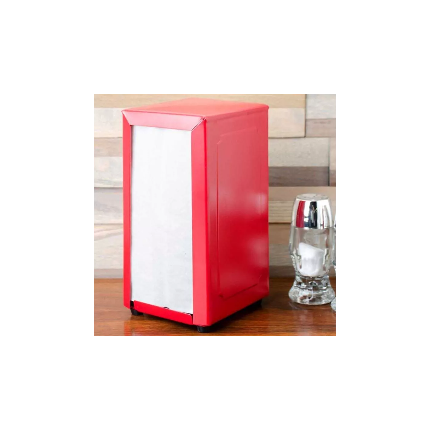 Este atractivo dispensador de servilletas plegables rojo, tiene un exterior de metal, dos lados dispensadores de servilletas y dos placas de respaldo de metal que se doblan hacia adentro y hacia afuera con un resorte, lo que garantiza que las servilletas estén siempre al alcance. Este dispensador de servilletas plegable sería una adición atractiva a sus mostradores y mesas con su llamativo color rojo. Tiene capacidad para 210 servilletas de una sola capa.