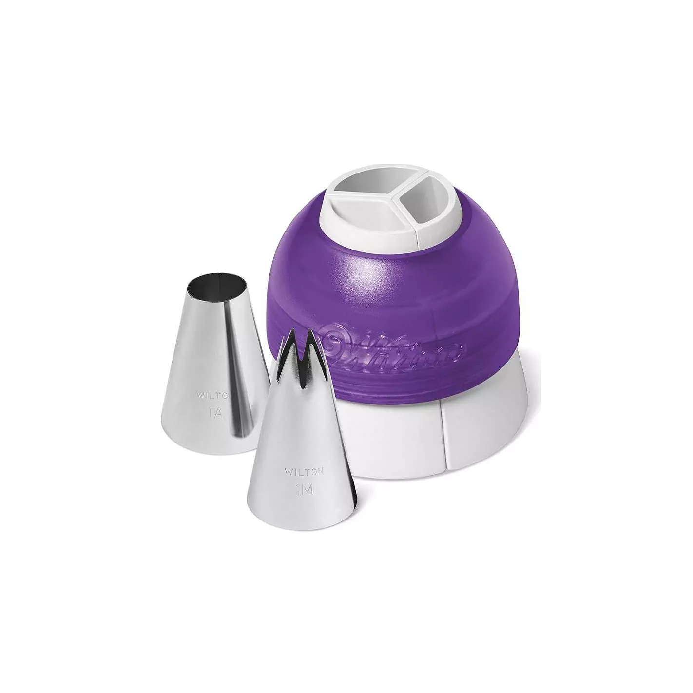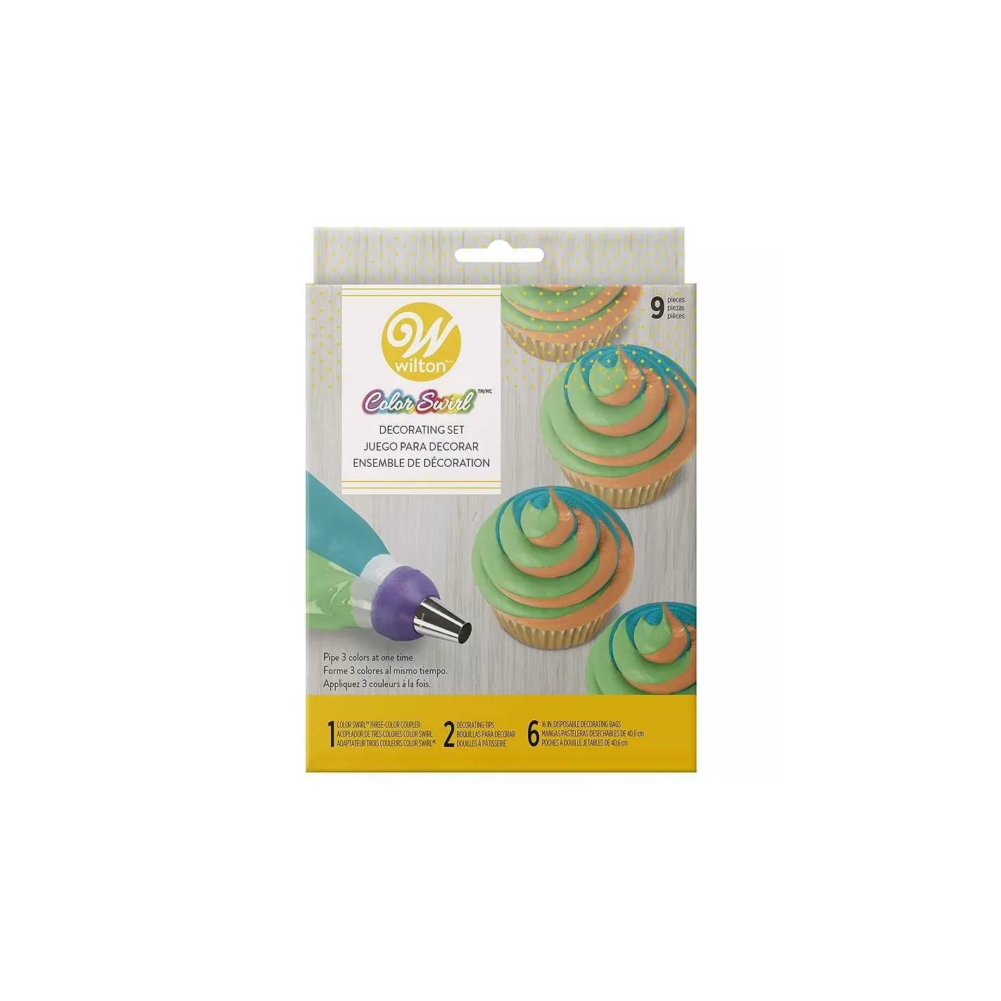 Ilumina tus pastelitos con remolinos de glaseado de arcoíris con el remolino de colores Wilton. Este acoplador de 3 colores le permite conectar 3 tonos diferentes de glaseado a la vez. Incluye el acoplador de glaseado tricolor, boquillas 1M y 1A y bolsas de decoración desechables. El kit de acoplador tricolor tiene todo lo que necesita para empezar puede elegir entre doble o triple remolino de color, simplemente conecte y asegure con el anillo incluido.COLOR: BLANCO