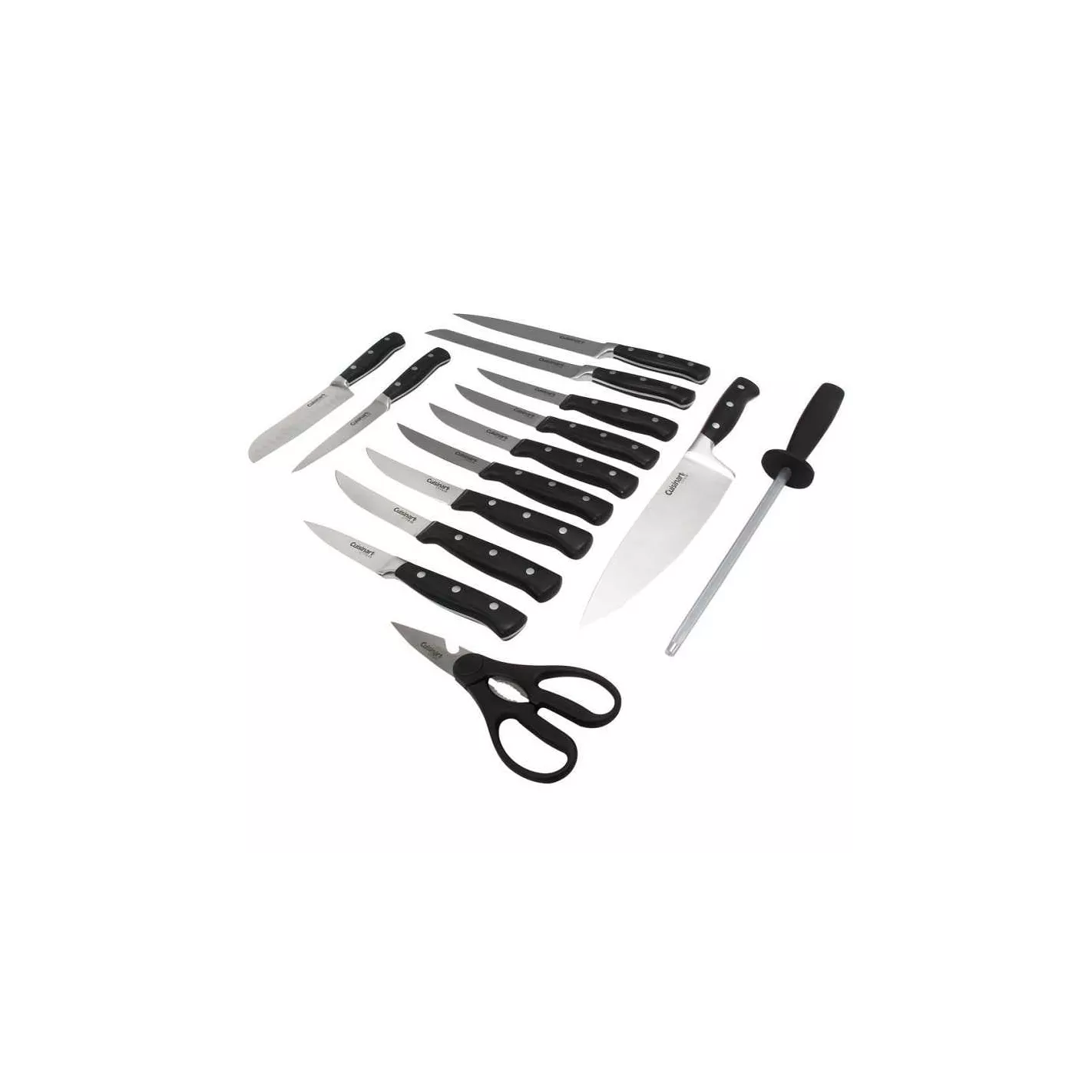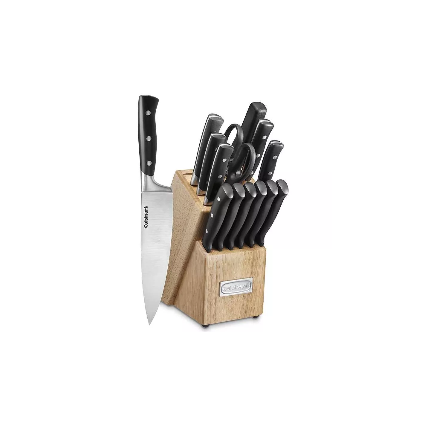 Los cubiertos de remache triple forjados de Cuisinart Classic poseen cuchillas superiores de acero inoxidable con alto contenido de carbono para precisión y exactitud. Empaquetados en un juego de bloque de 15 piezas y material abierto. Estos cuchillos extraordinarios tienen cuchillas afiladas que se estrechan gradualmente hasta un filo extremadamente afilado y fino, construidos para una estabilidad y control perfectos, diseñados con una funda de seguridad forjada extra ancha y remaches de acero inoxidable que aseguran la cuchilla al mango cómodo.