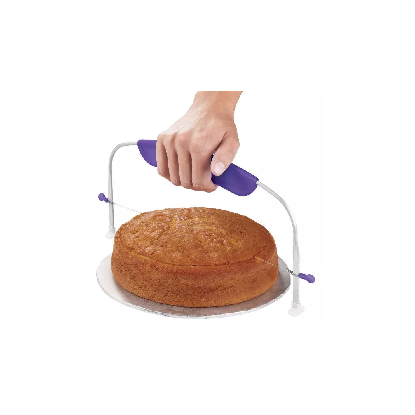 El nivelador de pastel Wilton es la forma rápida y fácil de crear capas de pastel uniformes, consistentes en altura. Cuchilla resistente y ajustable hasta 2 pulgadas de alto.