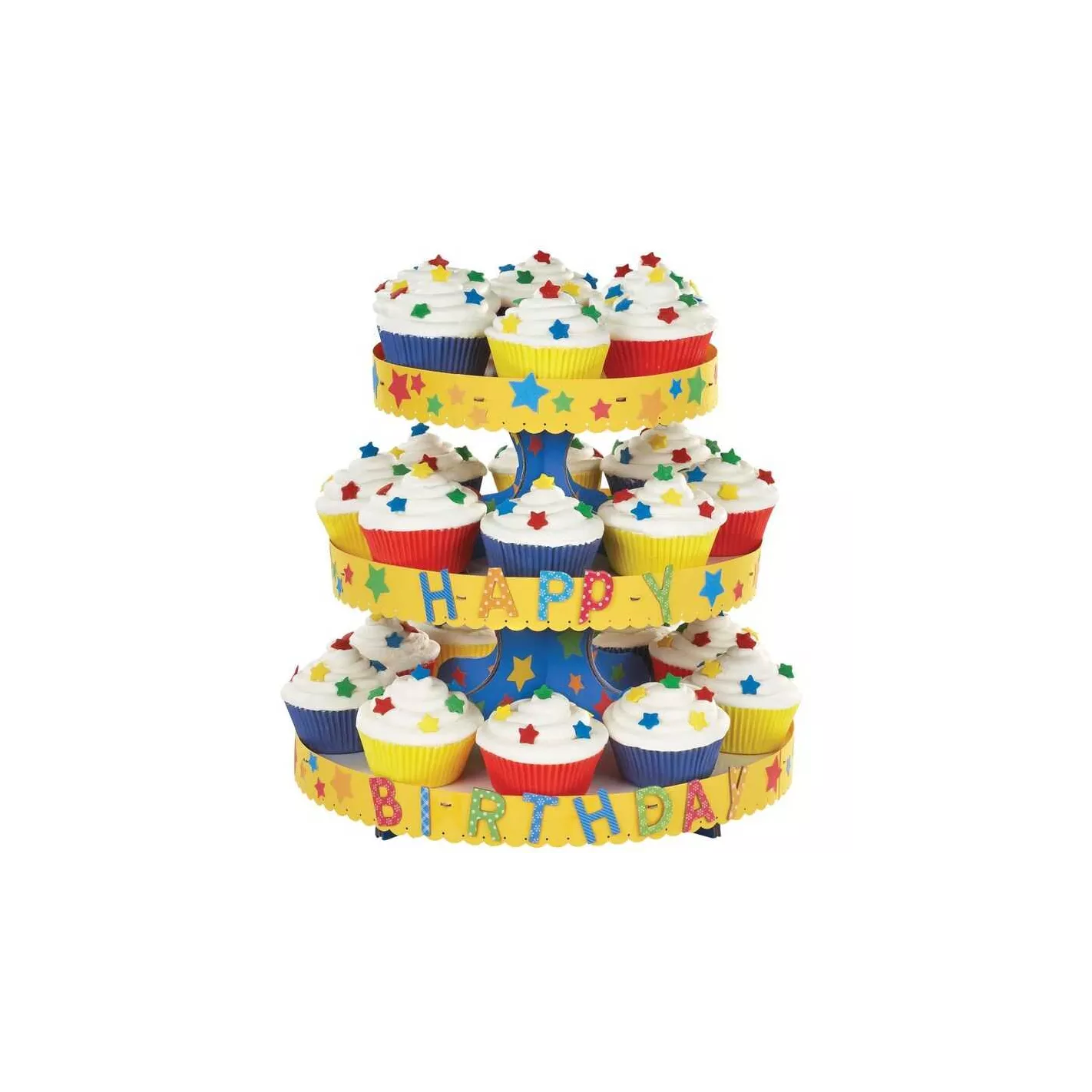 Crea una torre de pastelitos en cualquier ocasión con este soporte personalizable de 3 niveles. El montaje es fácil y puede personalizarlo para cumpleaños, bodas y baby shower con tela, papel de regalo, pegatinas y más. Incluye tiras de borde listas para personalizar. Solo montar, siguiendo las instrucciones incluidas y luego decorar las tiras fronterizas festoneados con un mensaje y sus acentos favoritos.