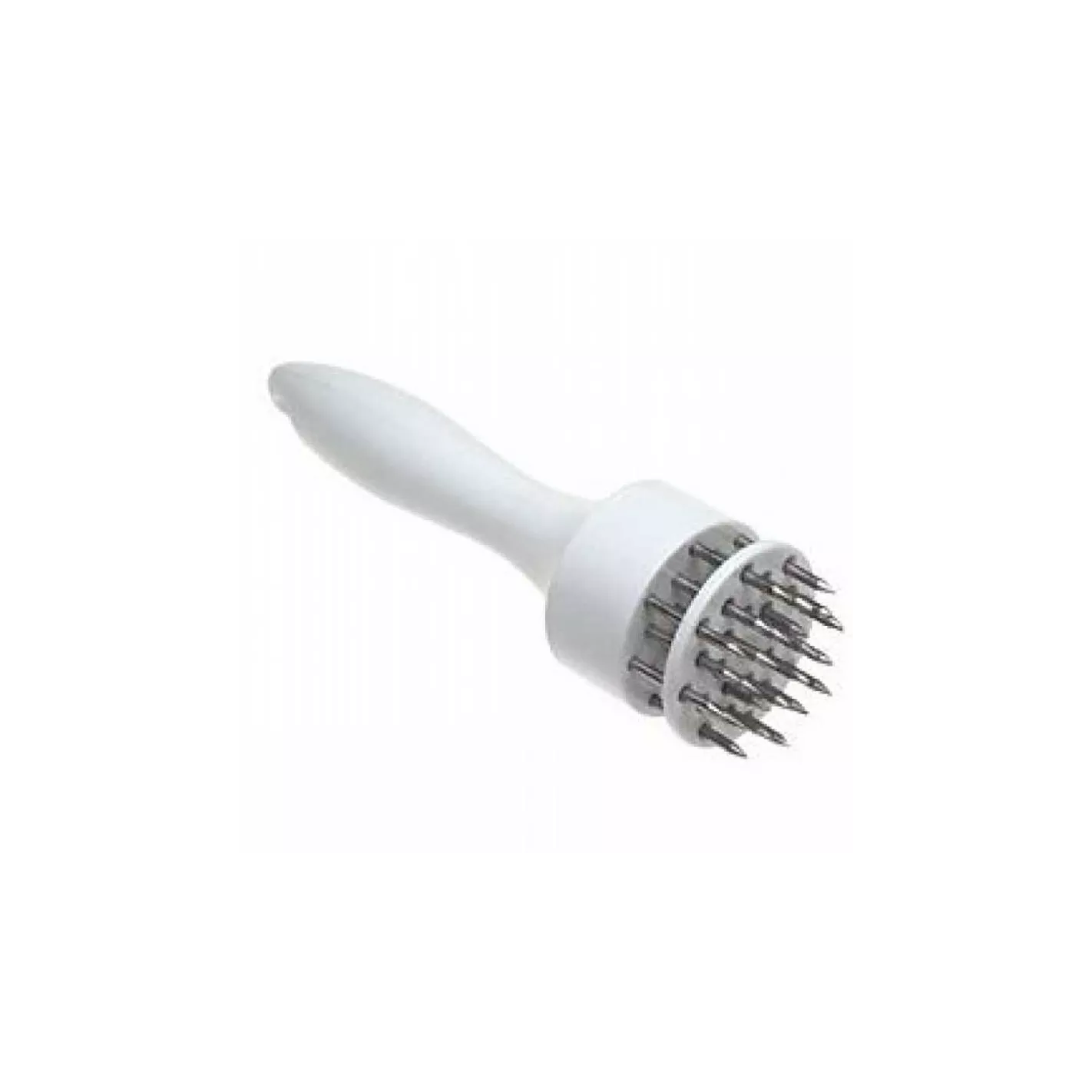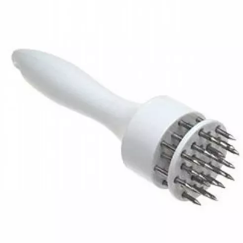 Este suavizador mejorará la textura y el sabor de las aves, pescado o carne de res, al tiempo que acelera el tiempo de cocción. Tiene 24 puntas de acero inoxidable que descomponen las fibras de carne dura y los tejidos conectivos y permiten que la marinada se absorba más rápido en la carne, creando resultados más sabrosos y jugosos. El mecanismo de acción de resorte de servicio pesado controla la acción. Lavado a mano recomendado