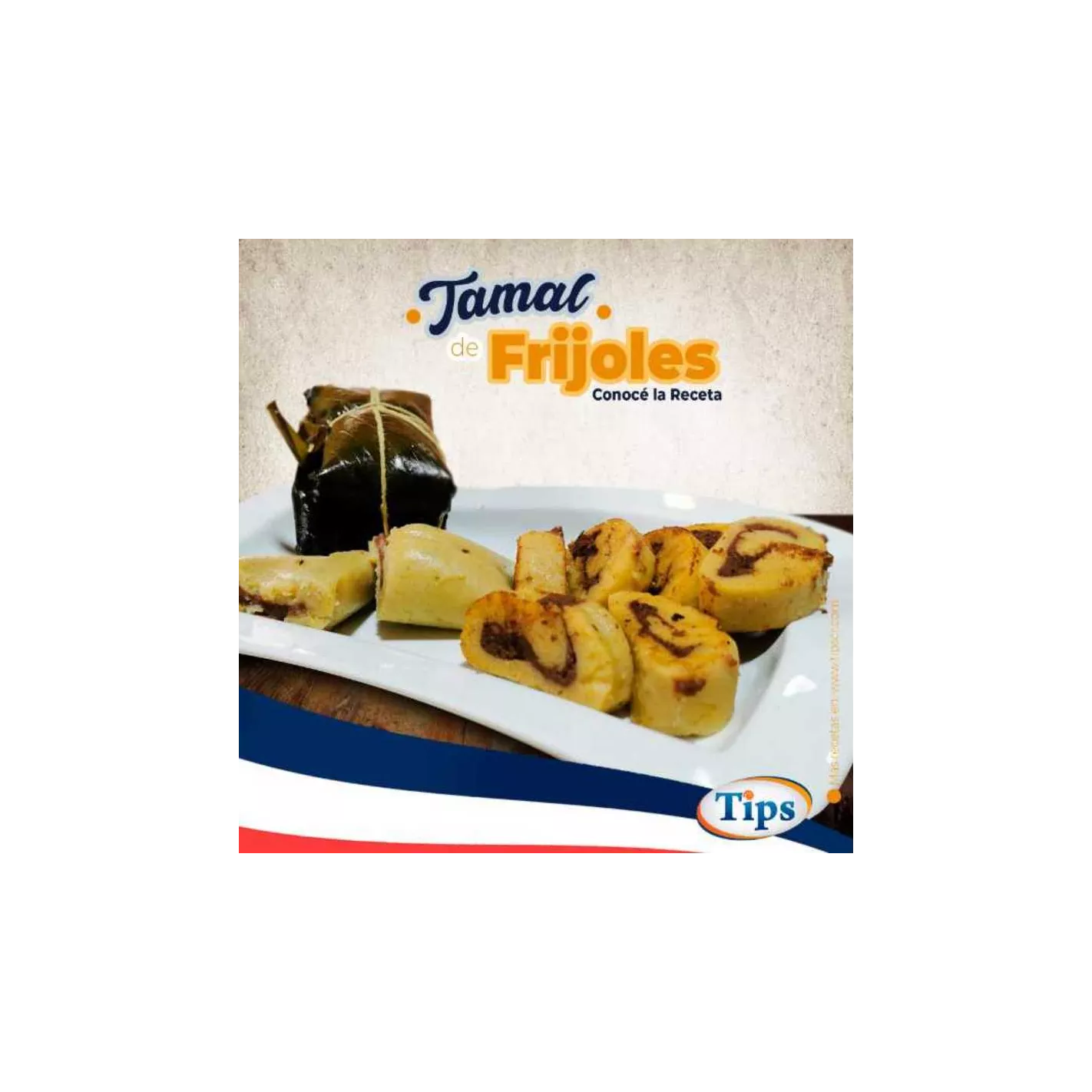 2.Para armar el tamal coloque una porción de masa forme una tortilla coloque los frijoles envuelva y dele la forma de tamal para hacer la piña.