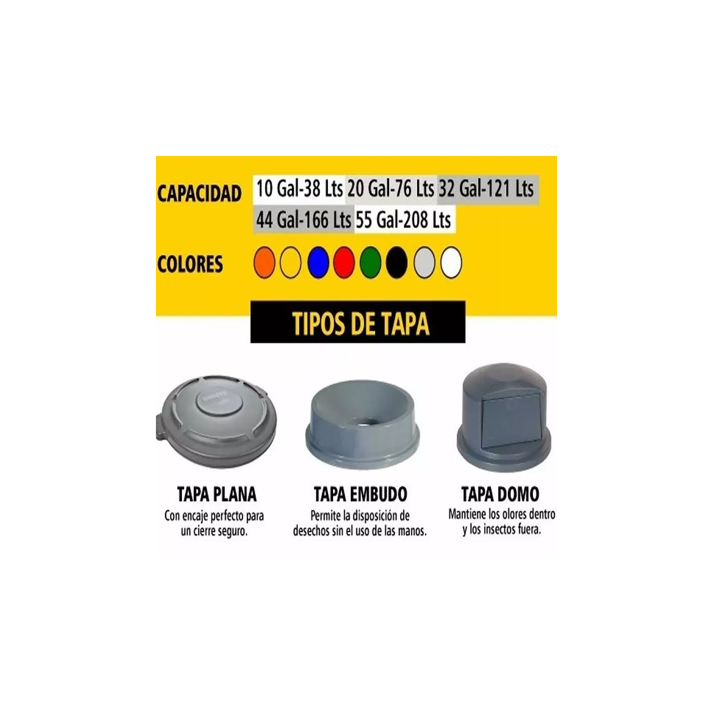 La tapa superior del embudo es para contenedores de 32 galones está seleccionada para la eliminación de residuos sin contacto. Controla los desechos, los olores y los desechos de fumar. Esta tapa de basura es redonda, moldeada por inyección y resiste la humedad y ciertos químicos.