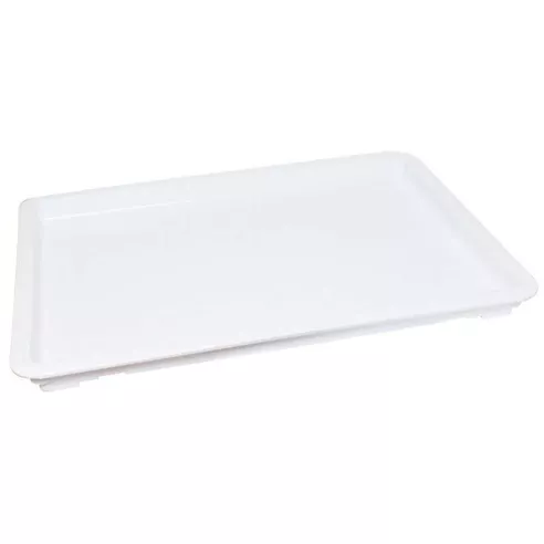 Guarde adecuadamente la masa de pizza con la cubierta de la caja de masa de pizza de Thunder Group. La cubierta está hecha de polipropileno duradero y es de color blanco. Está hecho para cajas de masa para pizza que miden 18 x 26 pulgadas. Forma rectangular.