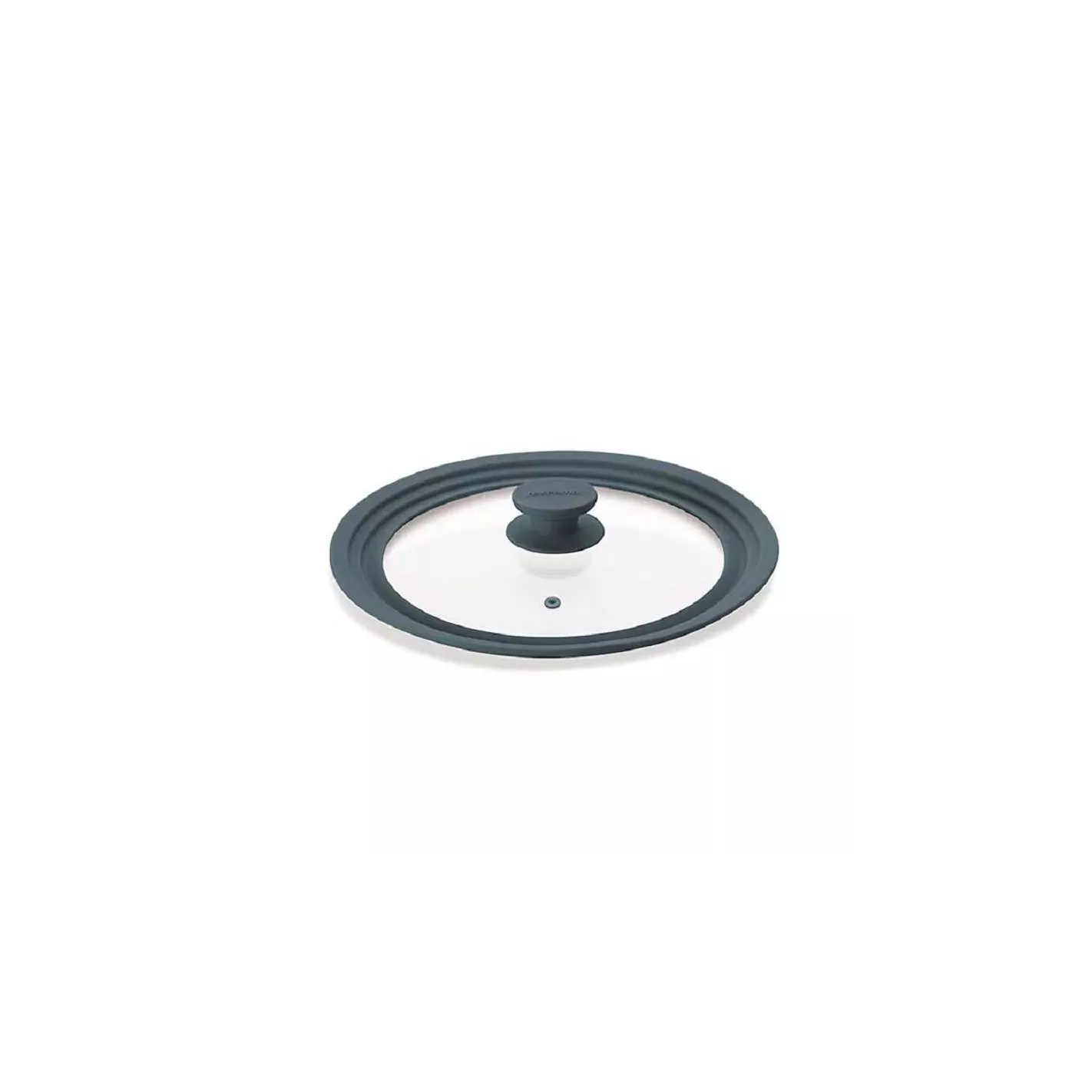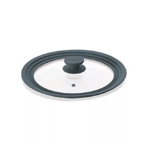 Esta tapa universal es imprescindible en la cocina: está fabricada en vidrio resistente al calor para poder controlar la cocción de los platos y tiene un borde de silicona, con ranuras de diferentes diámetros para que se adapte a varios tamaños de ollas y sartenes. La silicona cierra perfectamente el recipiente de cocción con el que está en contacto, mientras que la válvula en el vaso permite que el vapor se escape durante la cocción. El asa es resistente al calor hasta 200° C, por lo que la tapa también se puede utilizar para cerrar ollas y sartenes que van al horno.
