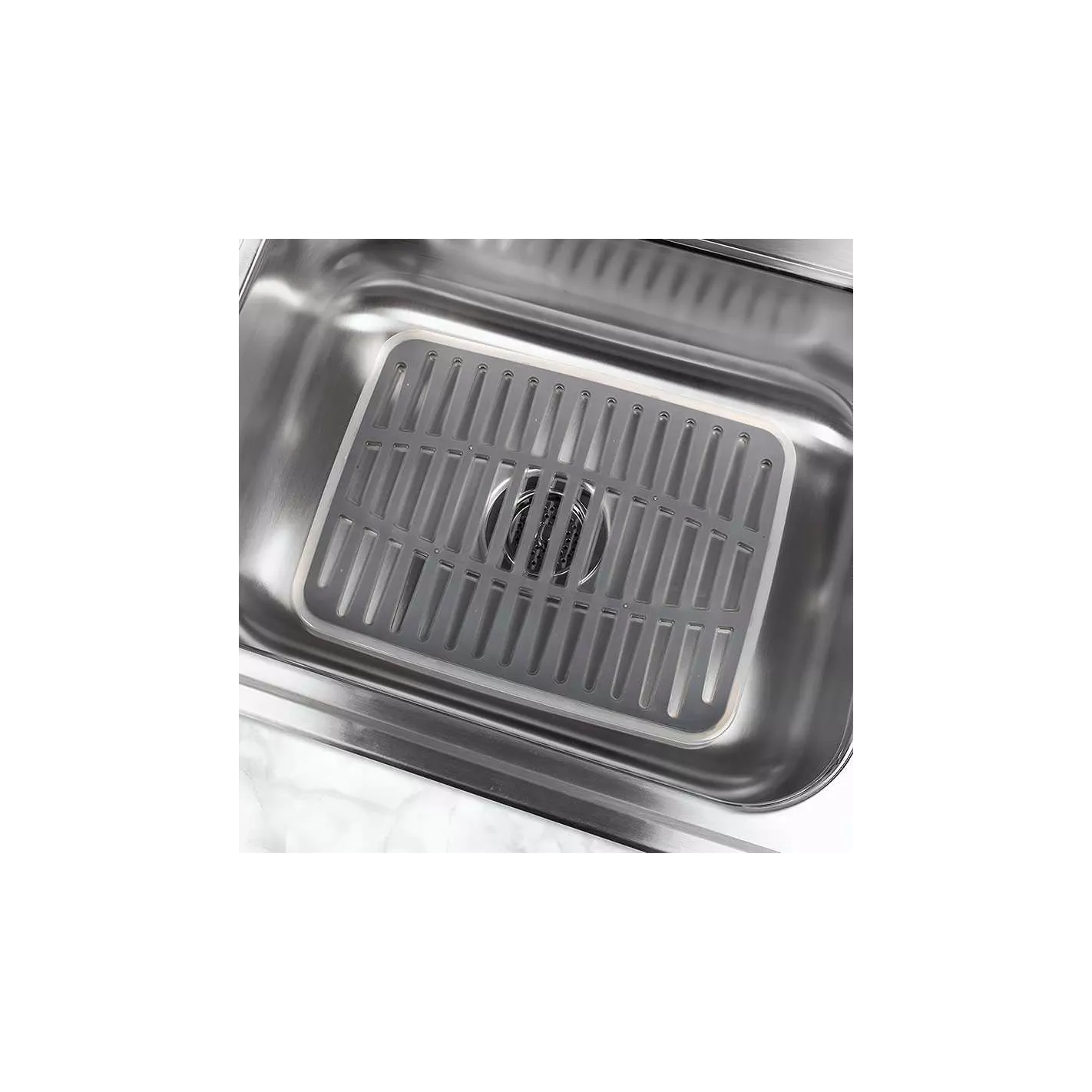 Transforme el fregadero de su cocina en una zona de trabajo organizada con la alfombrilla para fregadero grande Cora™ de Spectrum. Diseñada para adaptarse a fregaderos de un solo seno, esta alfombrilla para fregadero ayuda a proteger los platos, la cristalería y las superficies del fregadero. Las patas elevadas permiten que el exceso de agua fluya hacia el fregadero y promueven un tiempo de secado más rápido. Fabricada con plástico duradero y goma suave para ayudar a evitar que los artículos se resbalen y se deslicen.LARGO: PULGADAS = 12.25