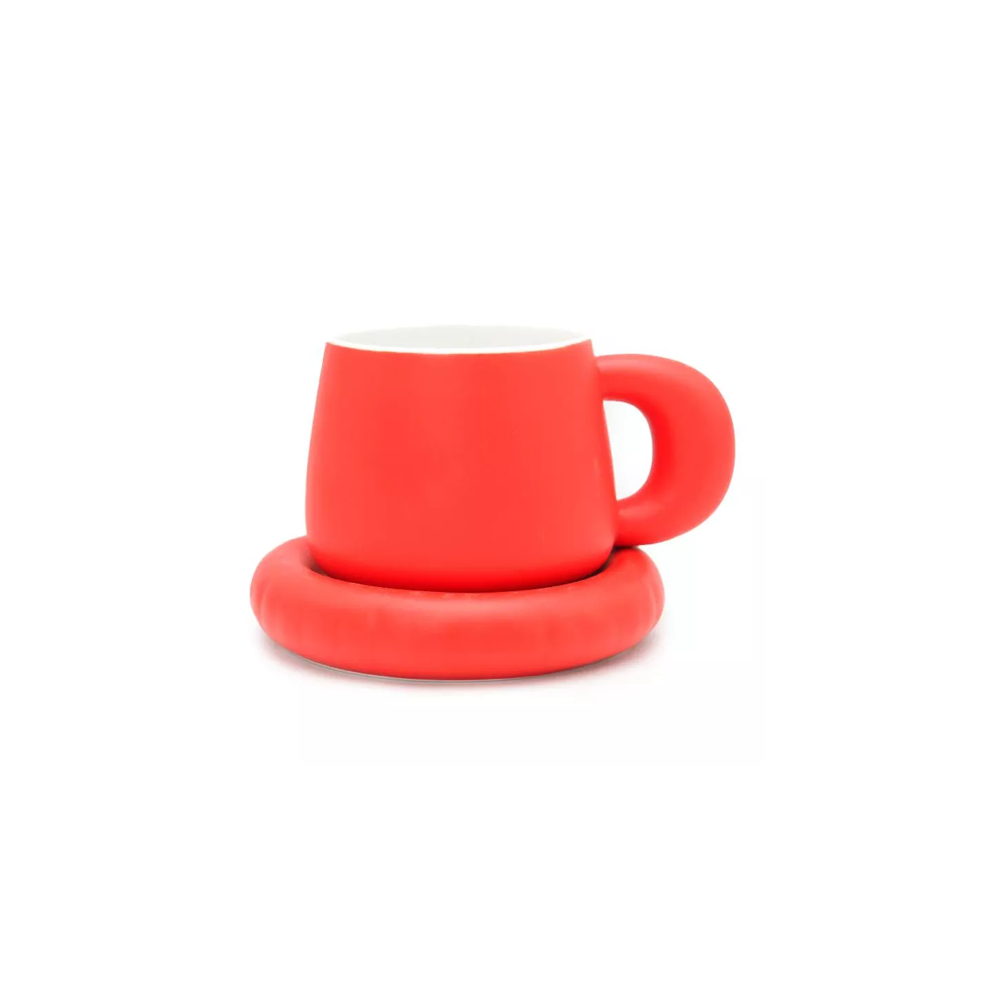 Taza con Plato de Ceramica de Color Rojo, Set de 2 Unidades TIPS HXT-051
