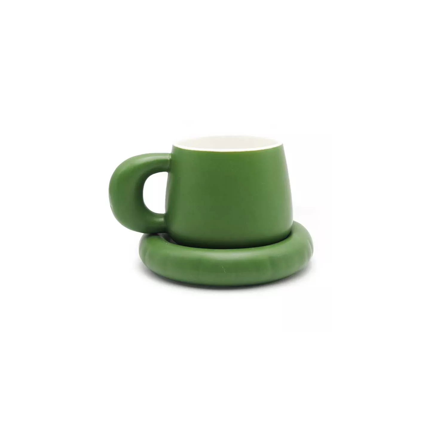 Taza con Plato de Ceramica de Color Verde, Set de 2 Unidades TIPS HXT-049