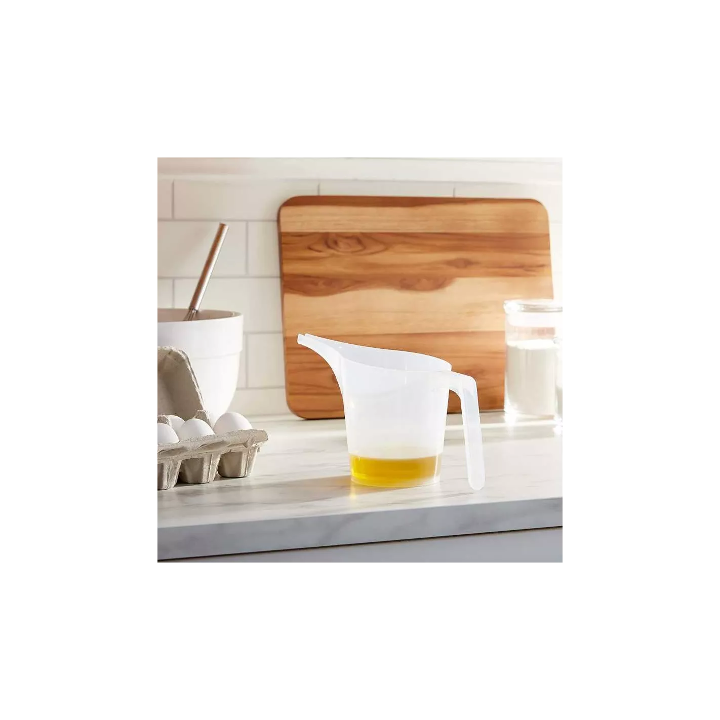 ¡Mida y vierta desde el mismo recipiente! La taza de medición Fox Run Easy Pour presenta un diseño único que brinda una comodidad increíble para cocinar y hornear. Hecho de plástico transparente duradero, la taza medidora tiene una gran capacidad de 3.5 tazas con una boca de vertido larga. ¡Vierte la masa con precisión en moldes para magdalenas o en una plancha para hacer panqueques sin desorden! No más masa corriendo por los lados de su taza de medir y sobre sus encimeras. Funciona mejor con masas finas y líquidos. El estilo de la jarra de embudo de este contenedor de medición también es ideal para enlatar, hacer jabón, hacer velas, regar plantas, líquidos automotrices y más. Mide con una herramienta que te permite canalizar cuidadosamente el contenido para obtener menos desorden.